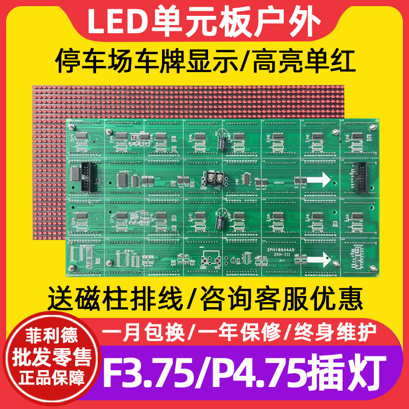 F3.75 전자 스크린 유닛 보드 플러그인 라이트 야외 P4.75 주차장 번호판 디스플레이 LED 디스플레이 모듈