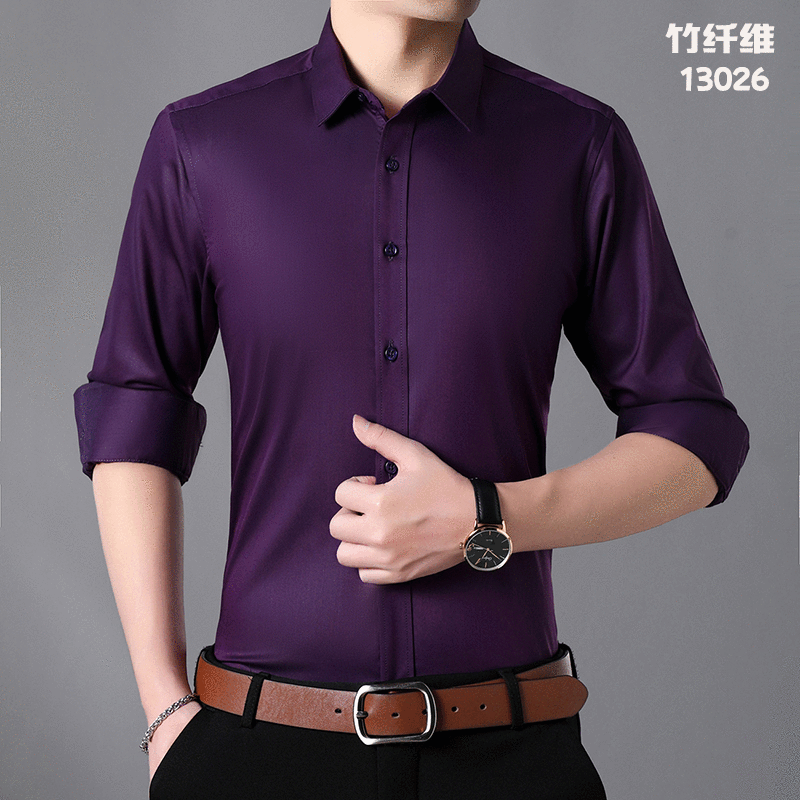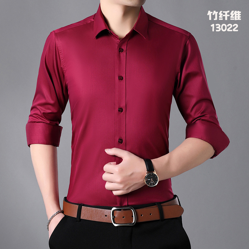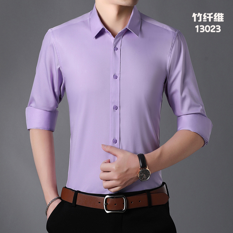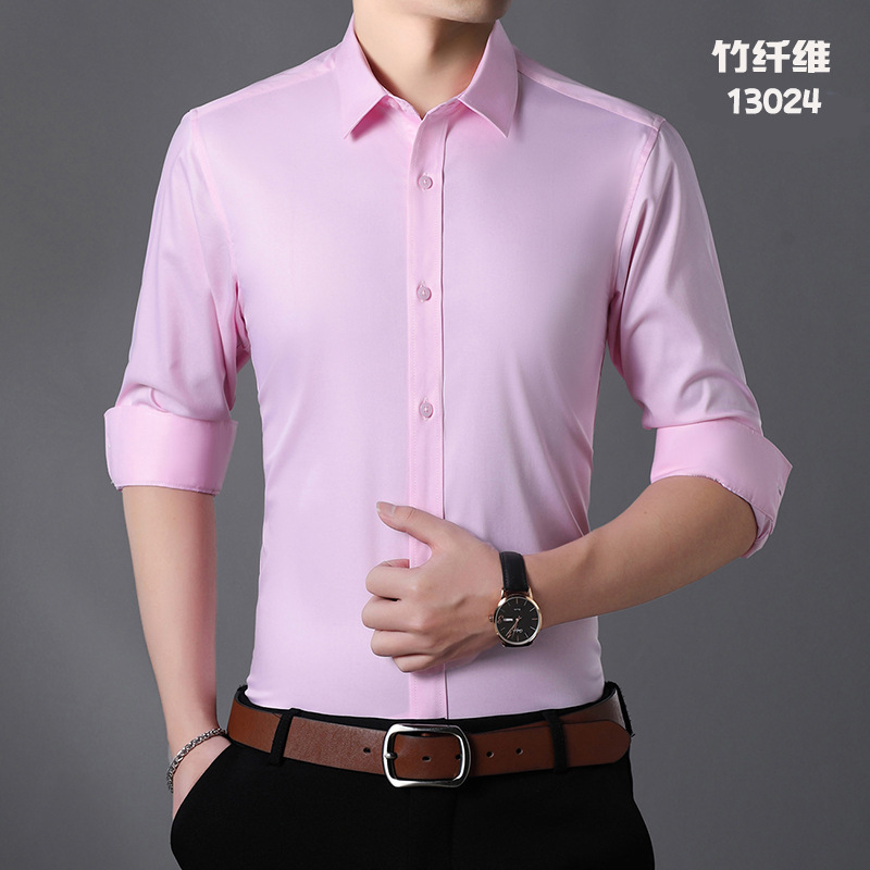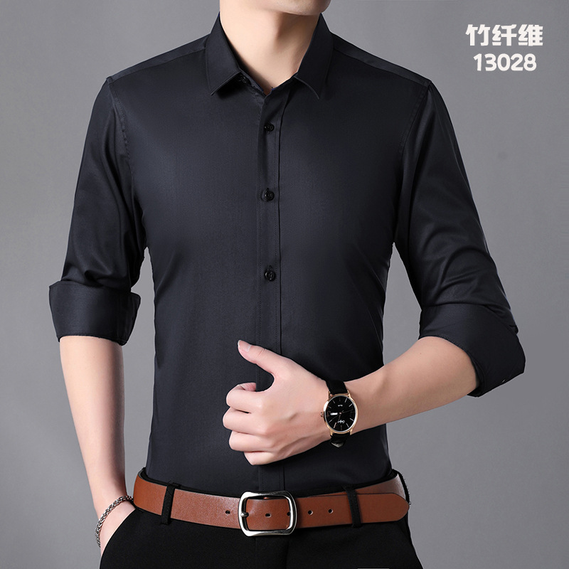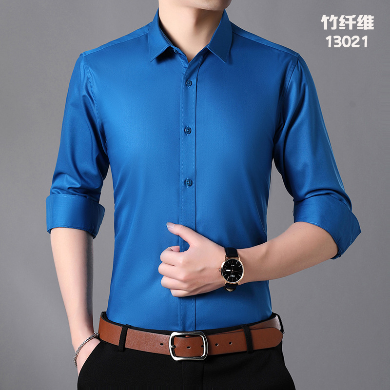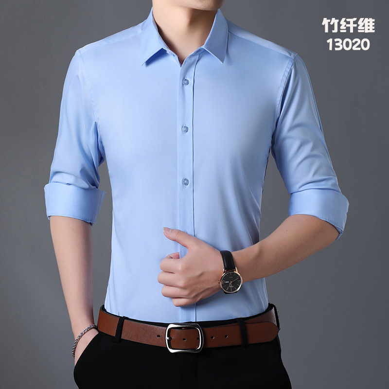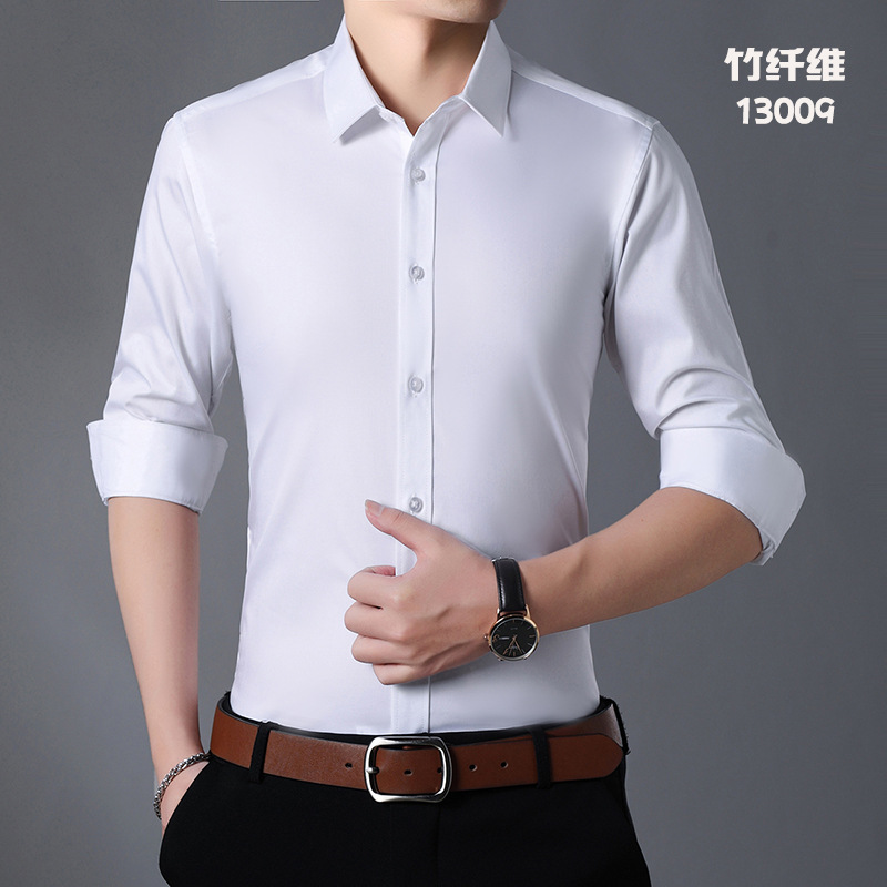 사용자 정의 로고 대나무 섬유 탄성 비 다림질 남자의 긴 소매 셔츠 남자의 비즈니스 의류 비즈니스 캐주얼 원피스 흰색 셔츠스토어 가기
