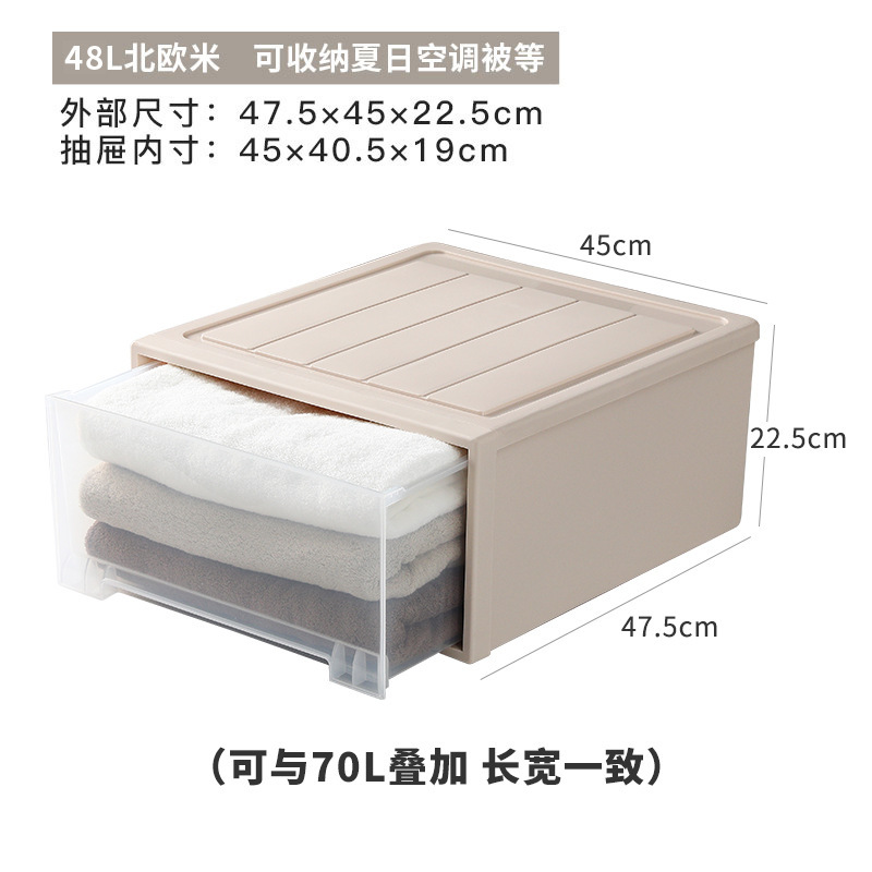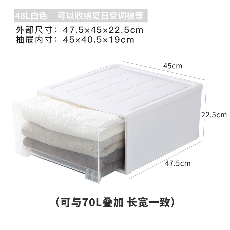 • 48L 아이보리 화이트 [47.5*45*22.5cm] 를 70L 로 겹칠 수 있음
