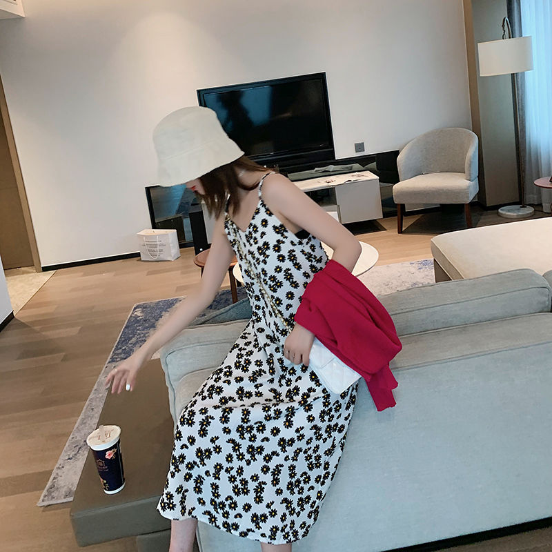 데이지 꽃 쉬폰 원피스 요정 슬림 스커트 슈퍼 요정 숲 프랑스 콘돌 스트랩 소녀 스커트 머리카락의 세대