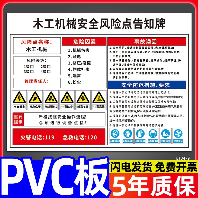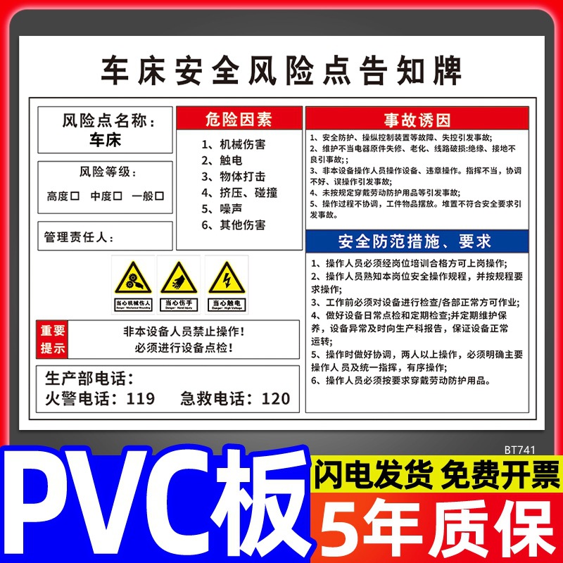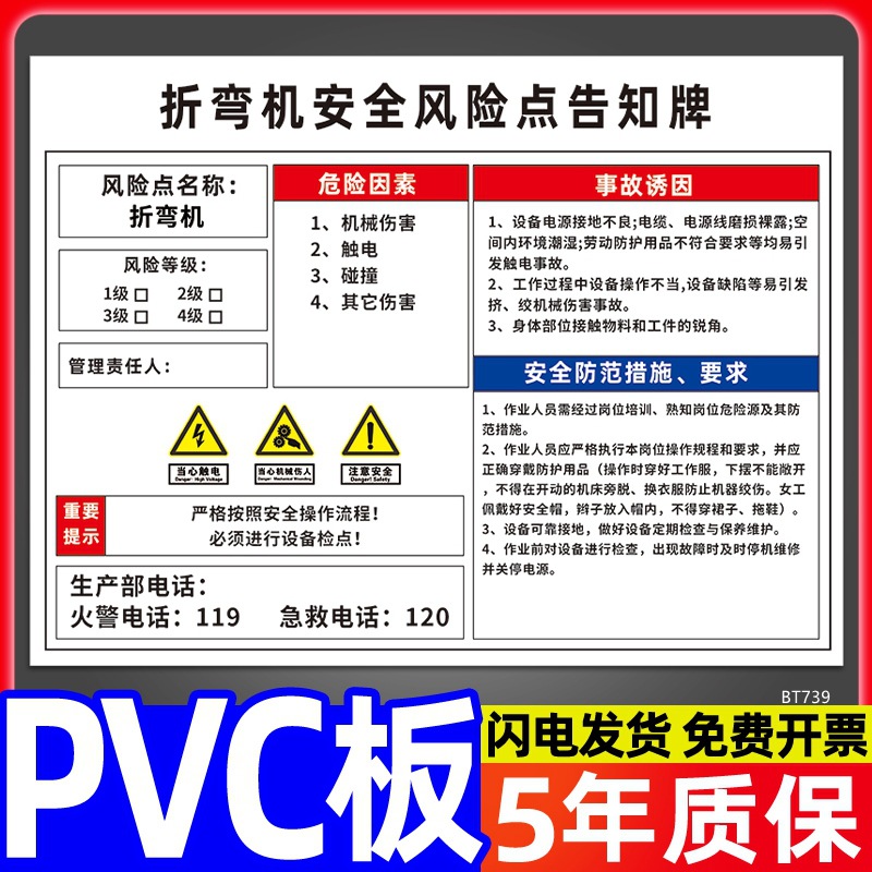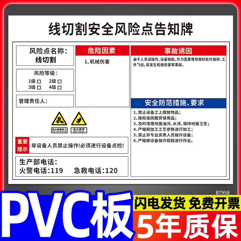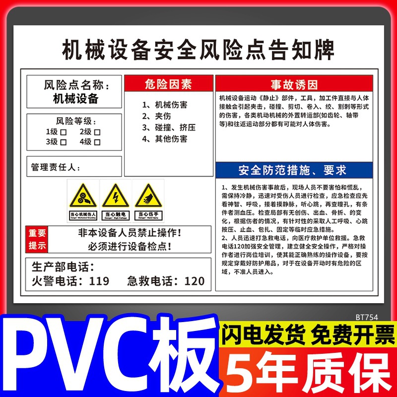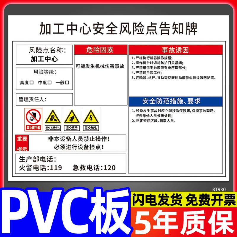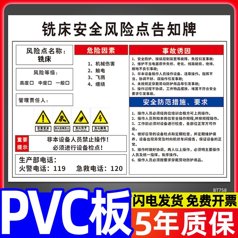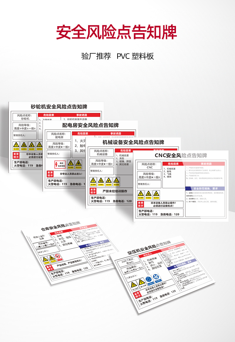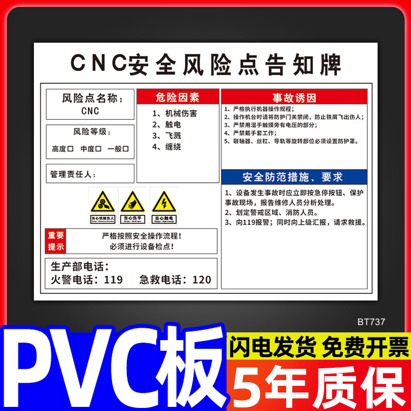 安全标识牌CNC安全风险点告知牌工厂车间告知卡机床电气机械设备