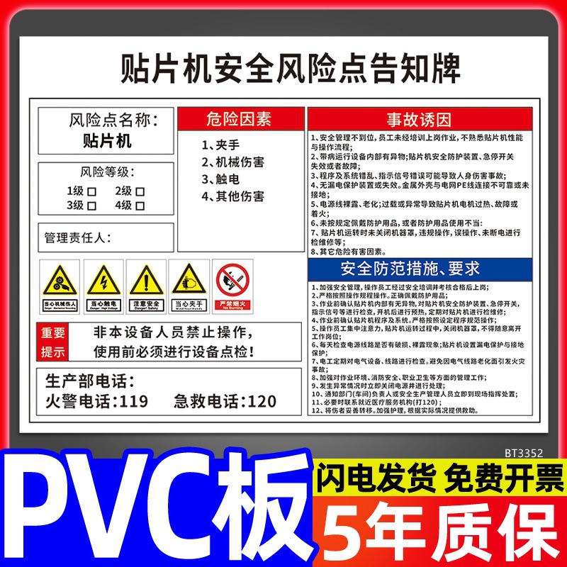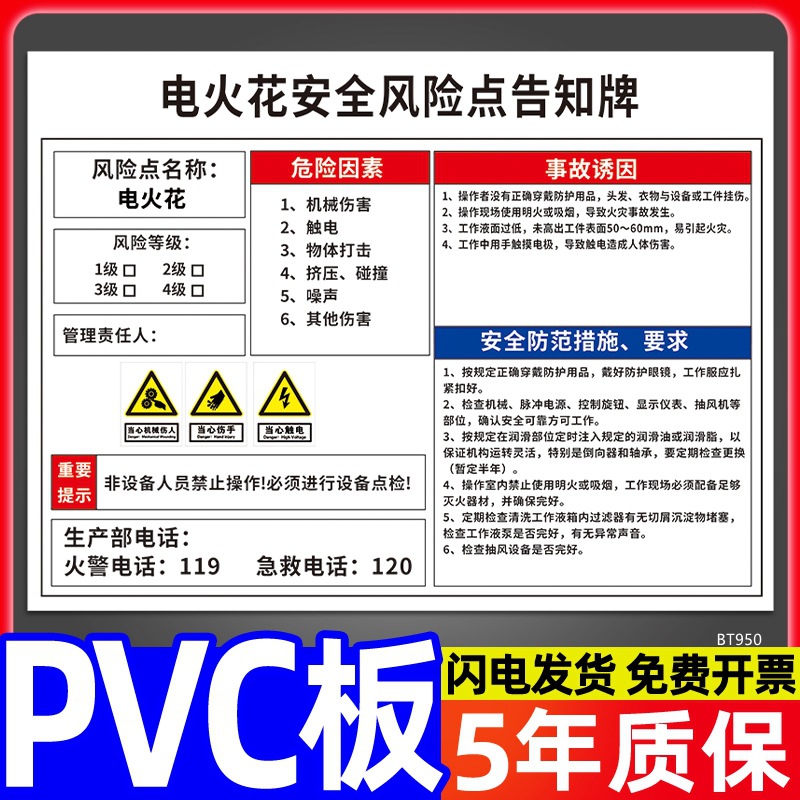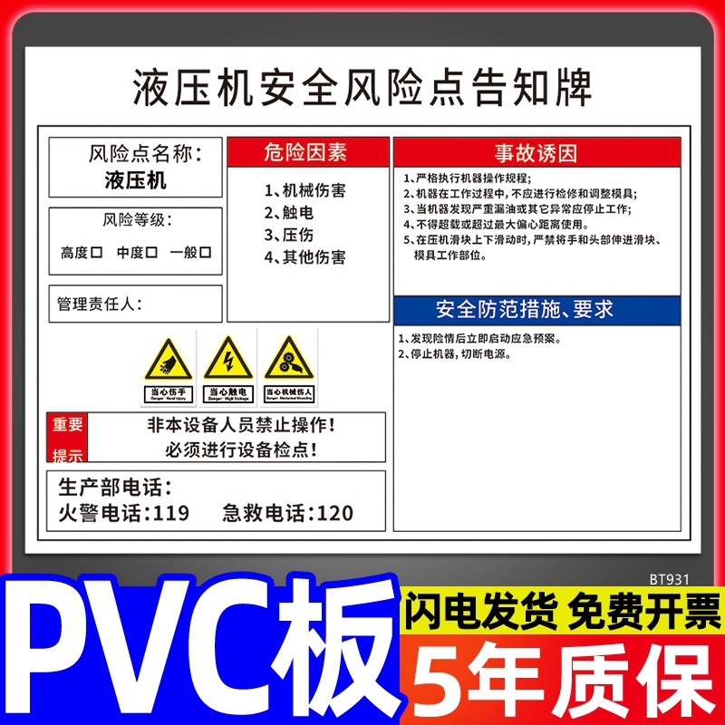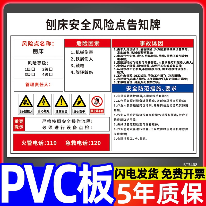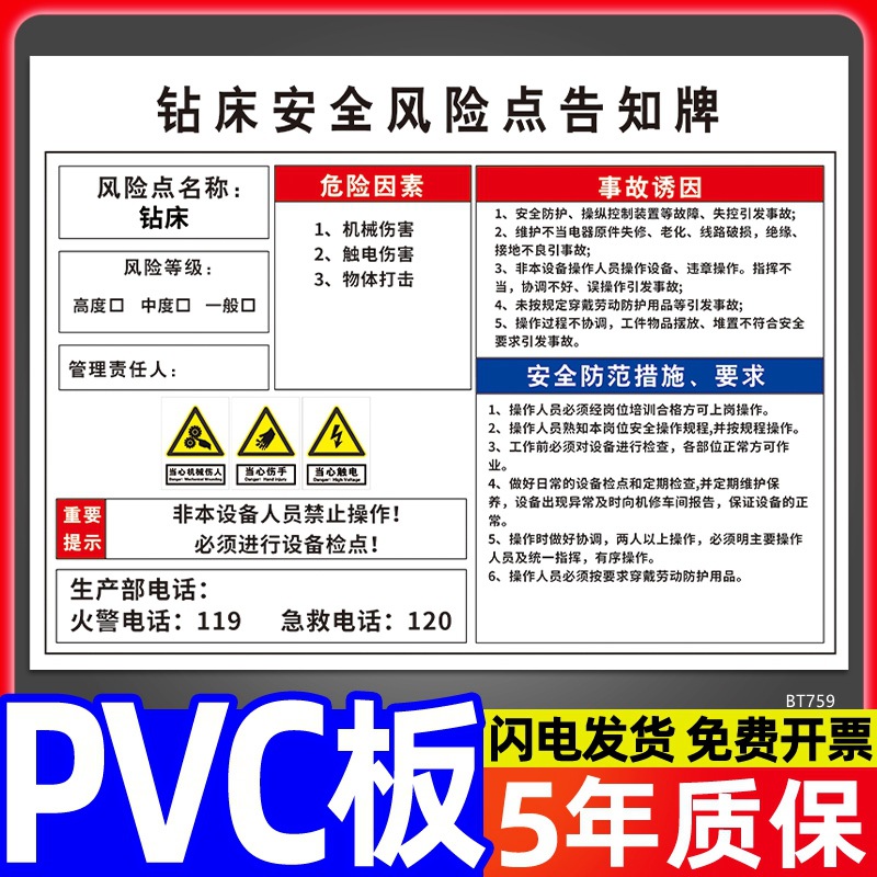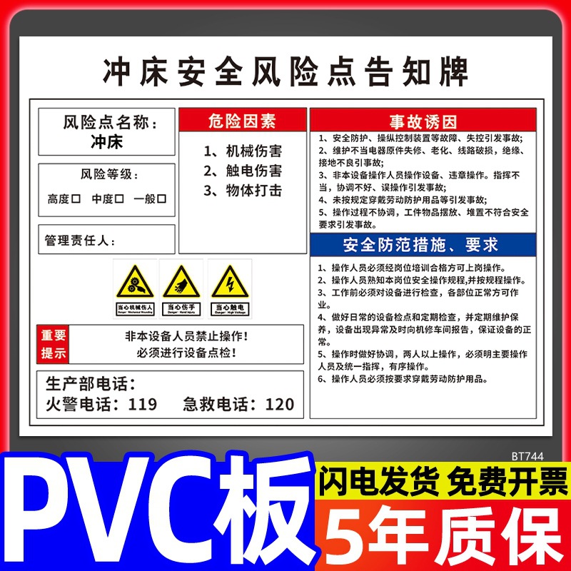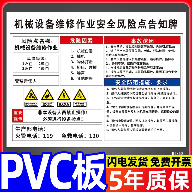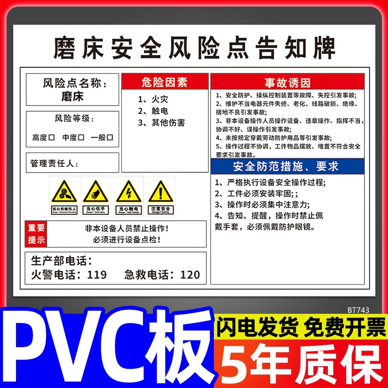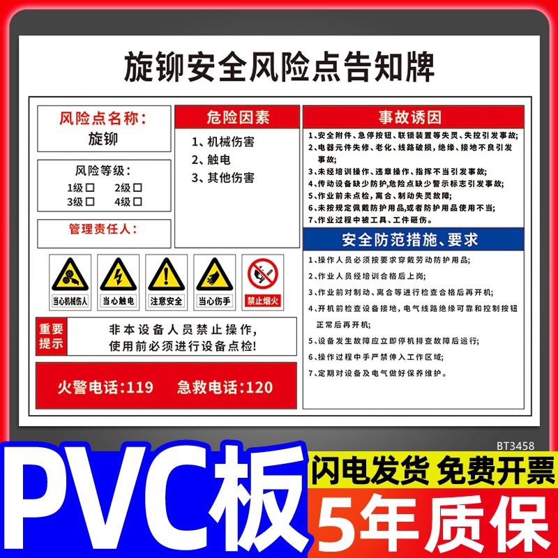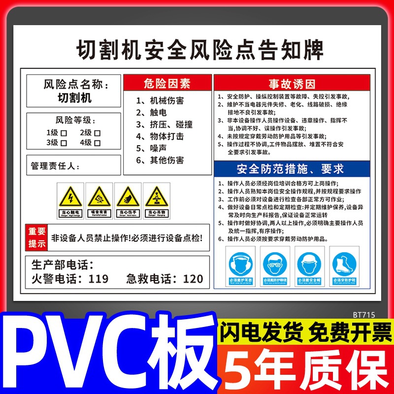 安全标识牌CNC安全风险点告知牌工厂车间告知卡机床电气机械设备