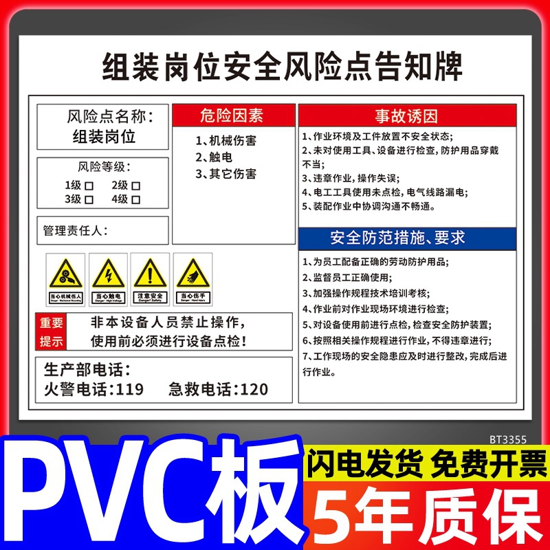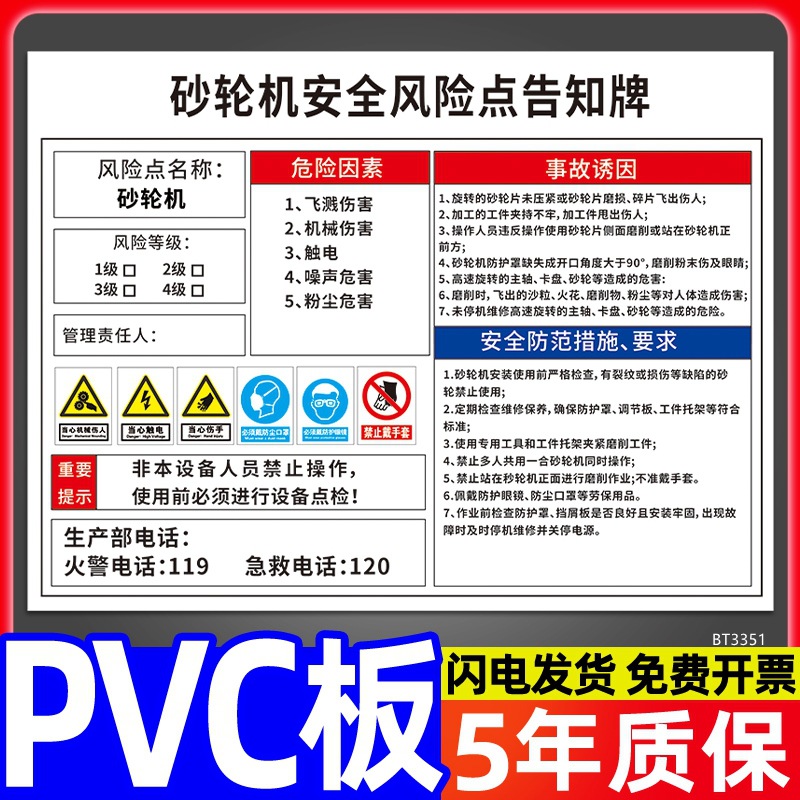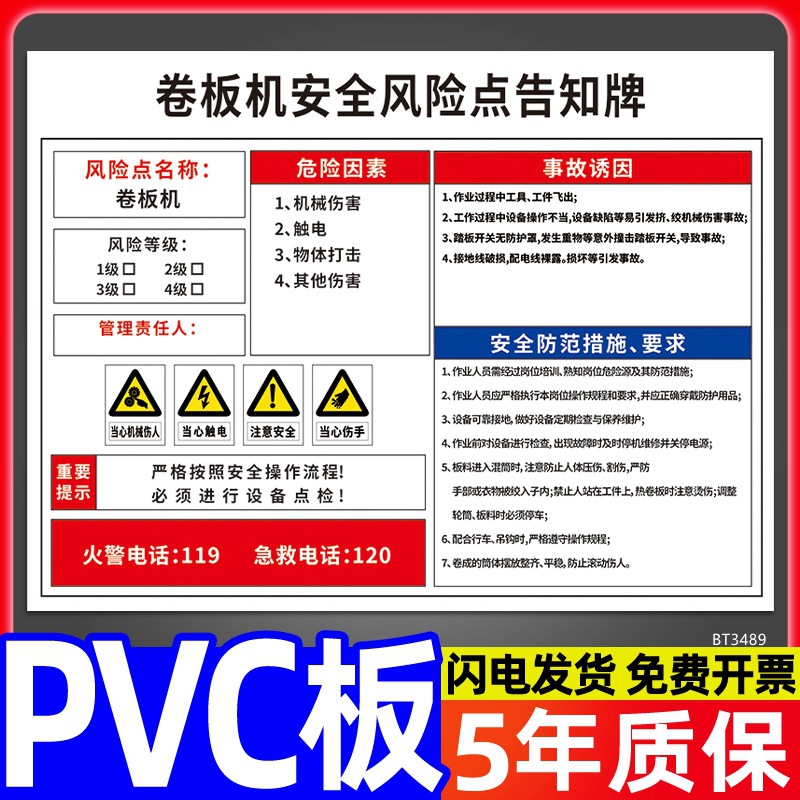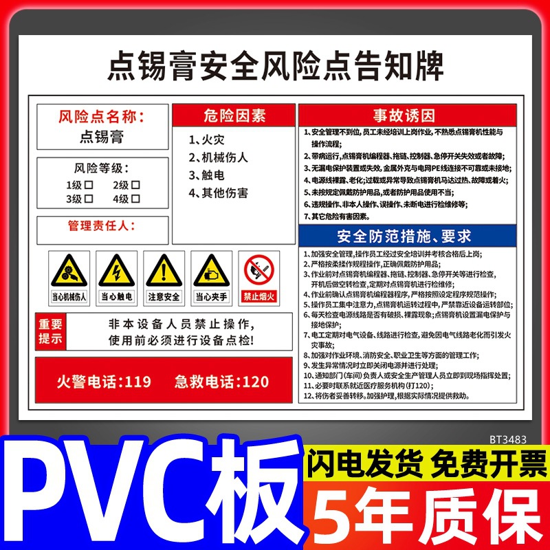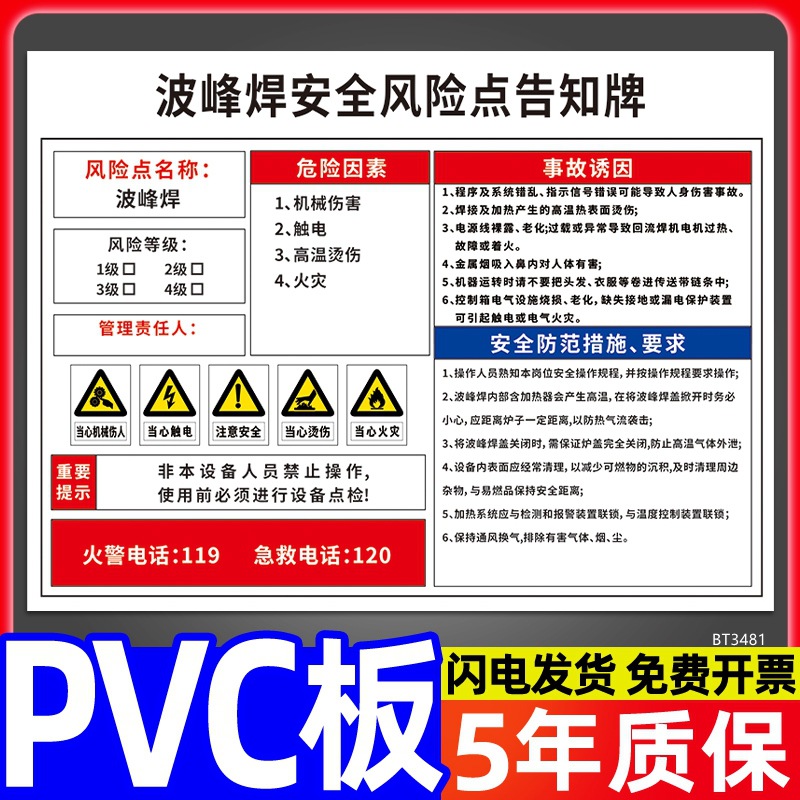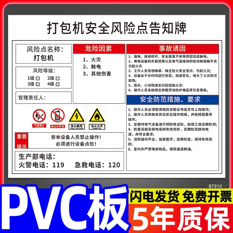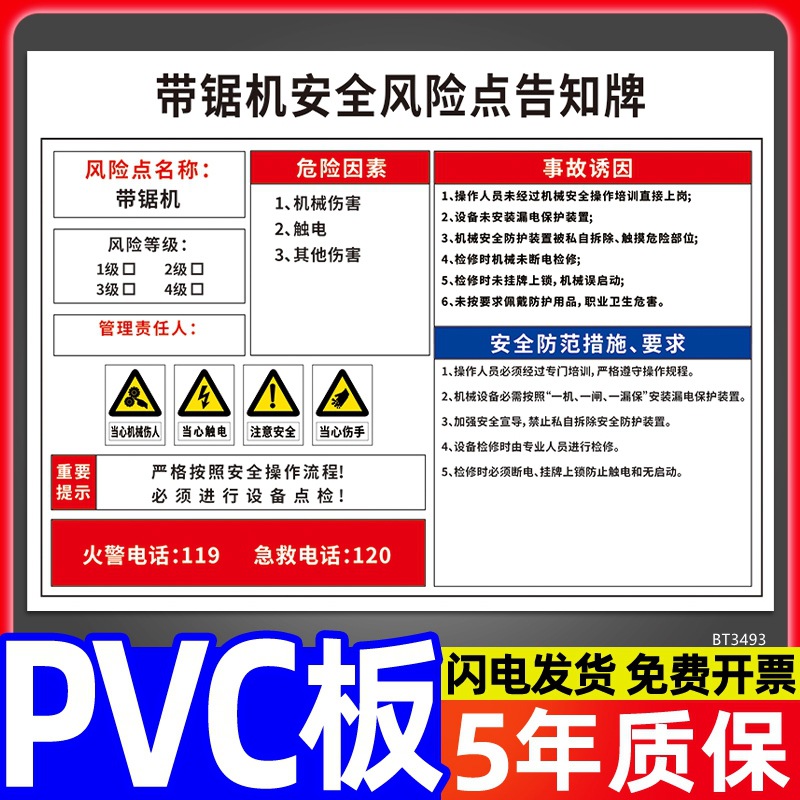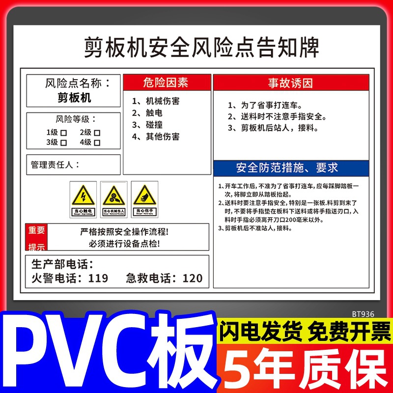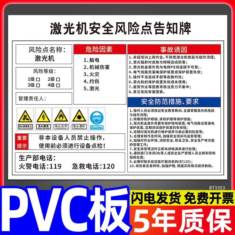 安全标识牌CNC安全风险点告知牌工厂车间告知卡机床电气机械设备