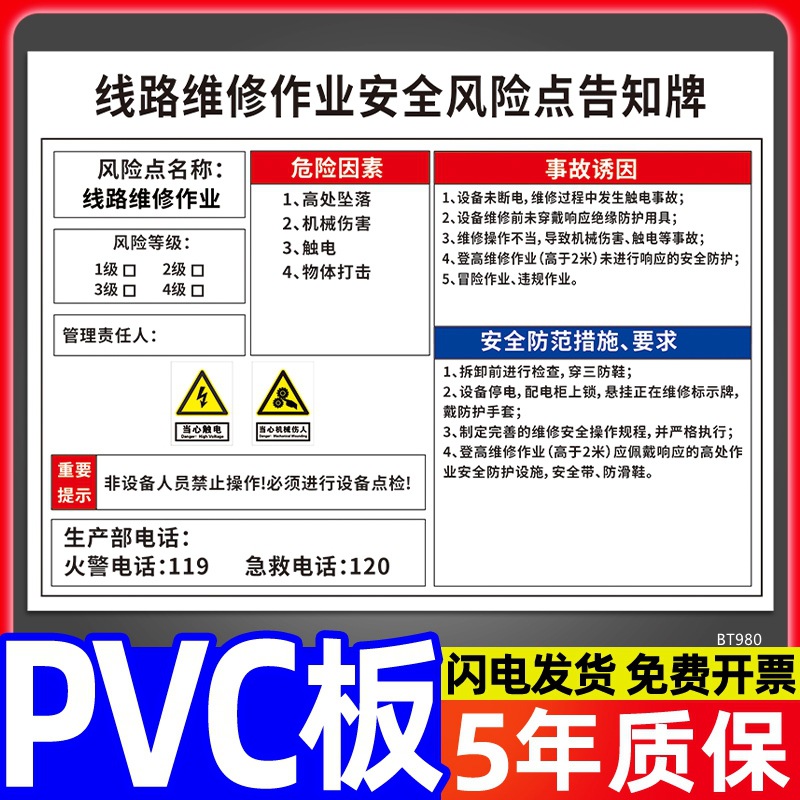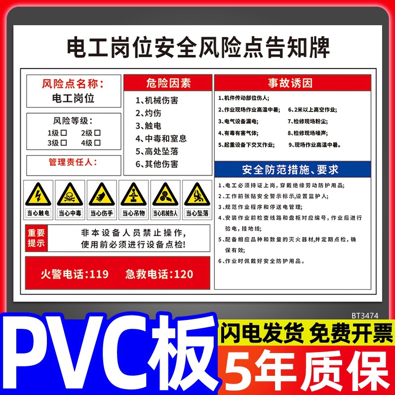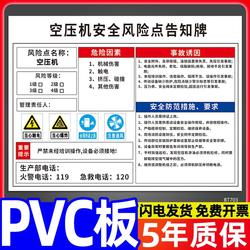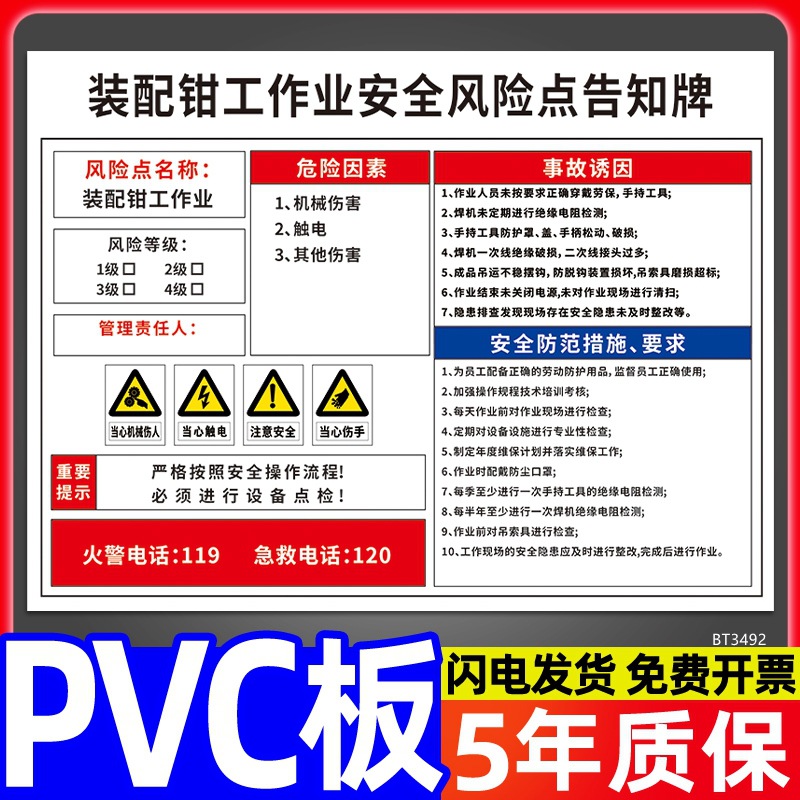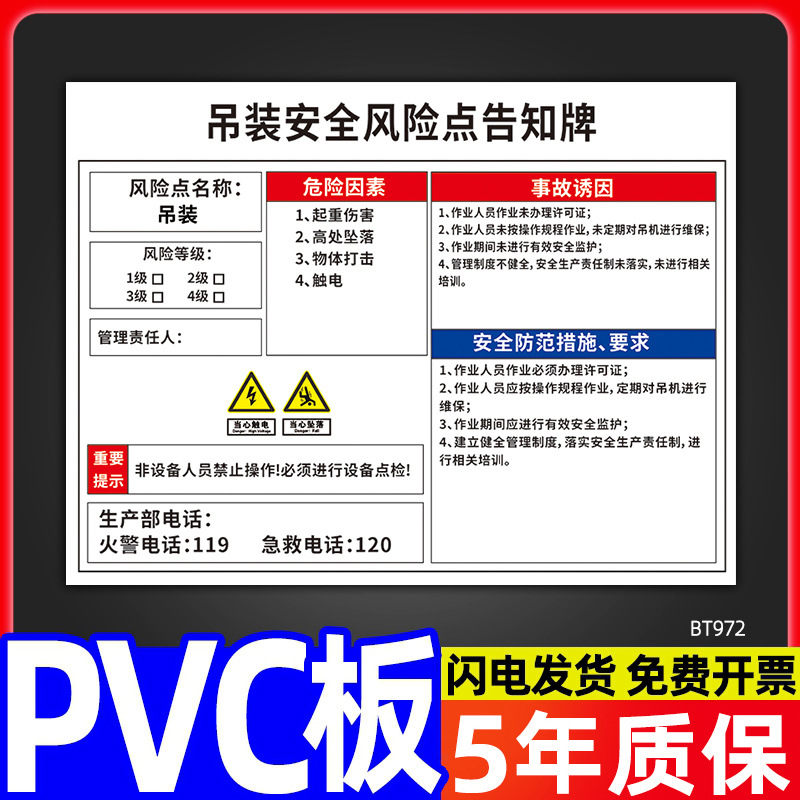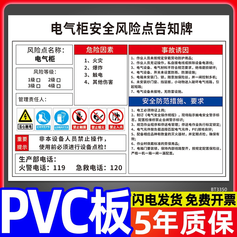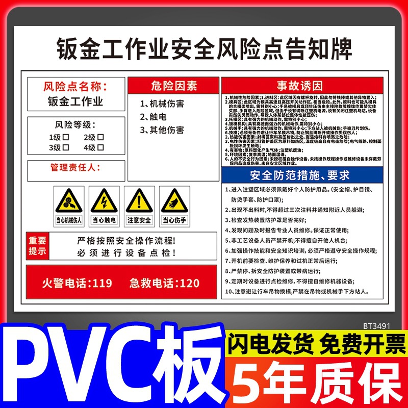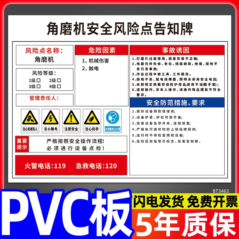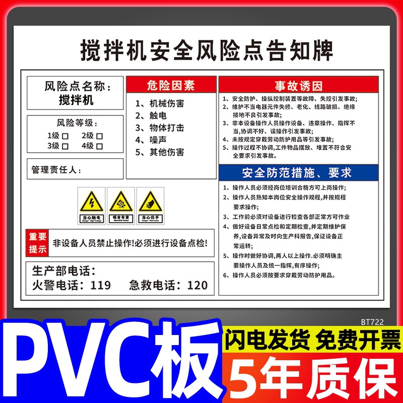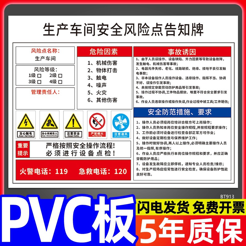 安全标识牌CNC安全风险点告知牌工厂车间告知卡机床电气机械设备