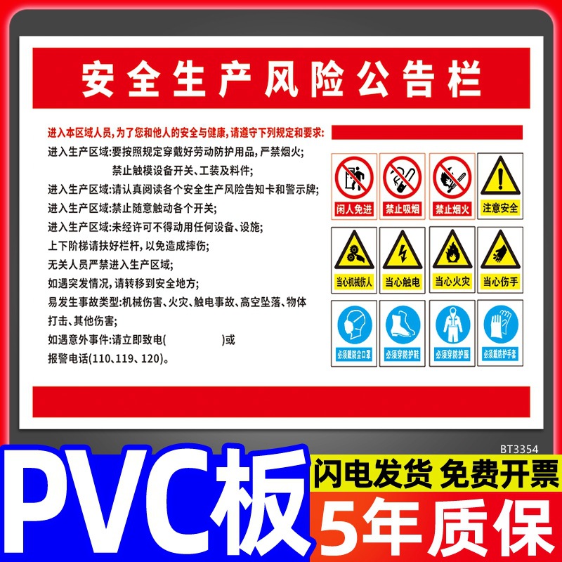 • BT3354 안전 생산 위험 게시판 30*40cm