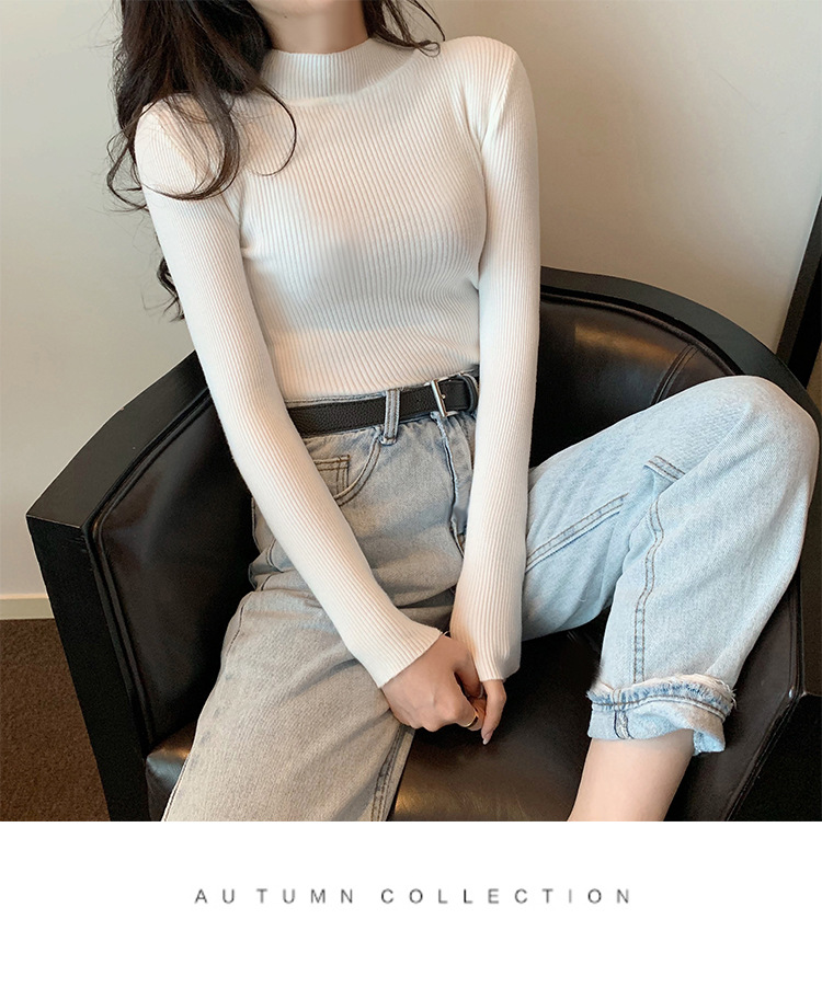 대외 무역 가을 반 터틀넥 긴팔 스웨터 여성용 2020 년 새로운 이너베이스 셔츠 여성용 슬림핏 하프 터틀넥 스웨터