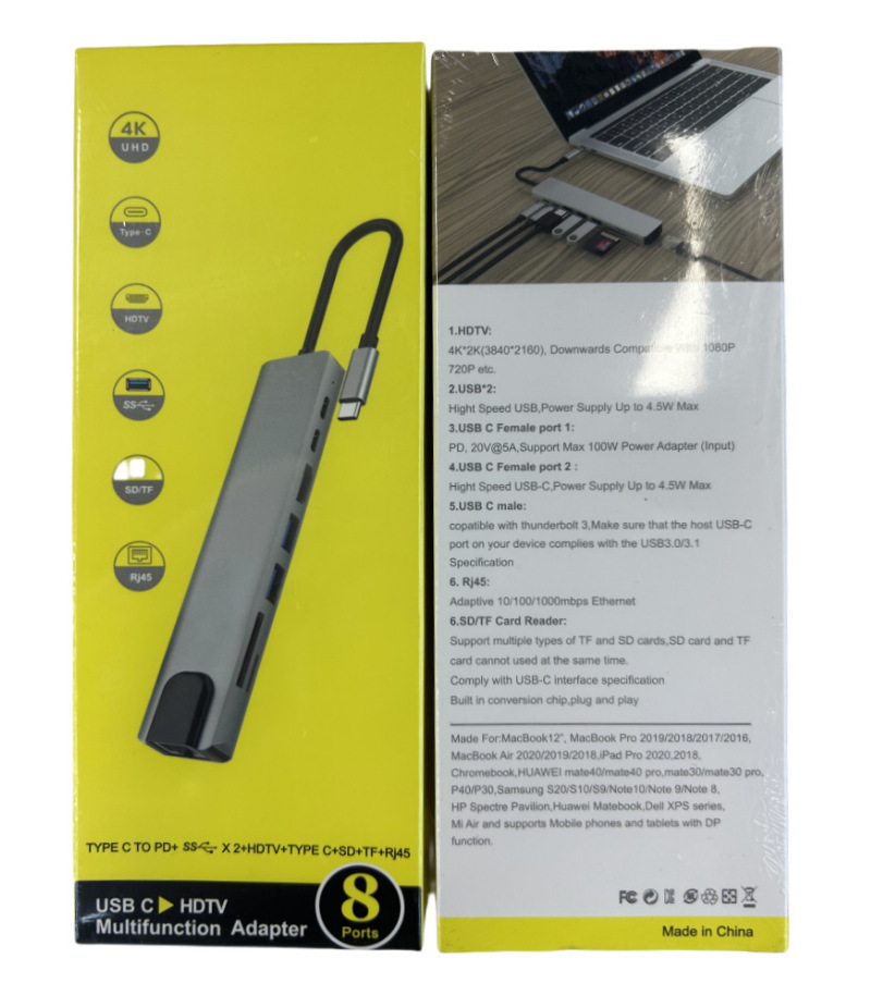 HD4k 변환기 기가비트 네트워크 카드 컴퓨터 usb3.0 다중 인터페이스 확장기로 8-in-1 typec 도킹 스테이션스토어 가기