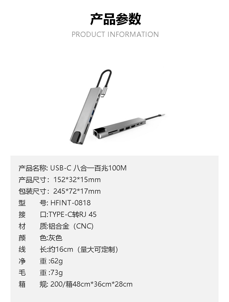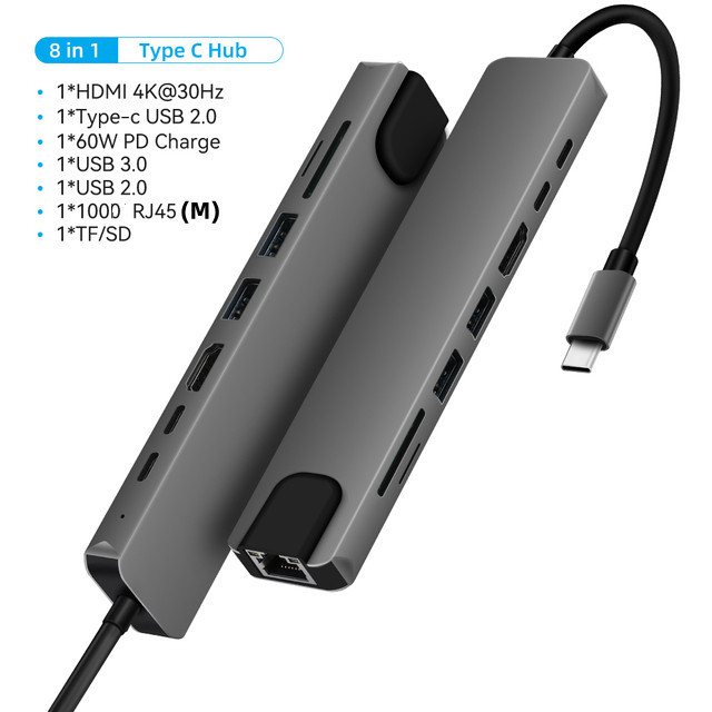 HD4k 변환기 기가비트 네트워크 카드 컴퓨터 usb3.0 다중 인터페이스 확장기로 8-in-1 typec 도킹 스테이션