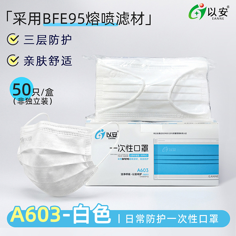 이안A603 민간용 일회용 마스크 3중 산업용 멜트블로운 천 포함 안개 방지 노동 보호 방진 마스크 50개