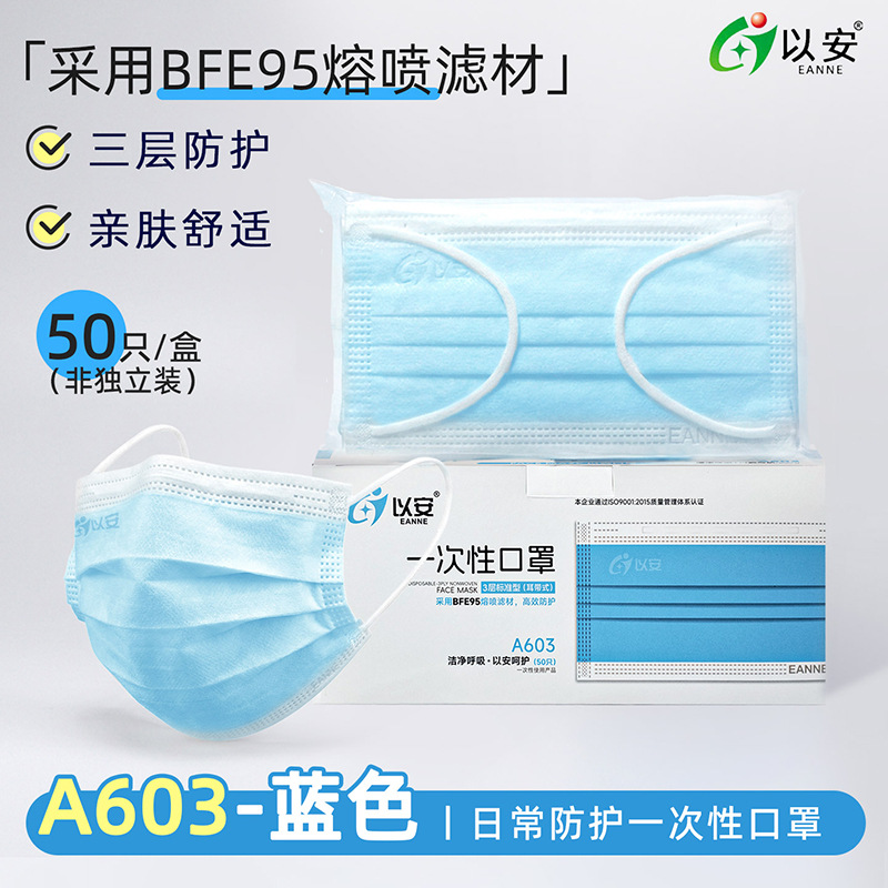 이안A603 민간용 일회용 마스크 3중 산업용 멜트블로운 천 포함 안개 방지 노동 보호 방진 마스크 50개스토어 가기