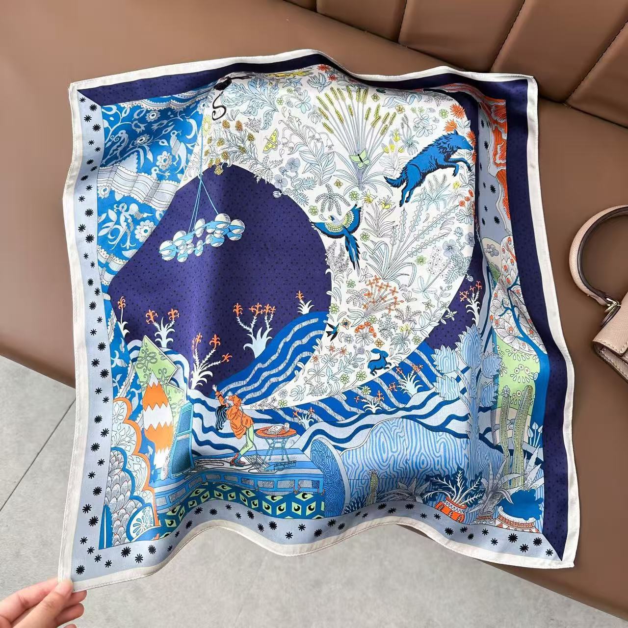 실크 작은 사각 스카프 얇은 넥타이 가방 유화 뽕나무 실크 프랑스 스카프 여름 새로운 모든 일치 기질 스카프 도매스토어 가기