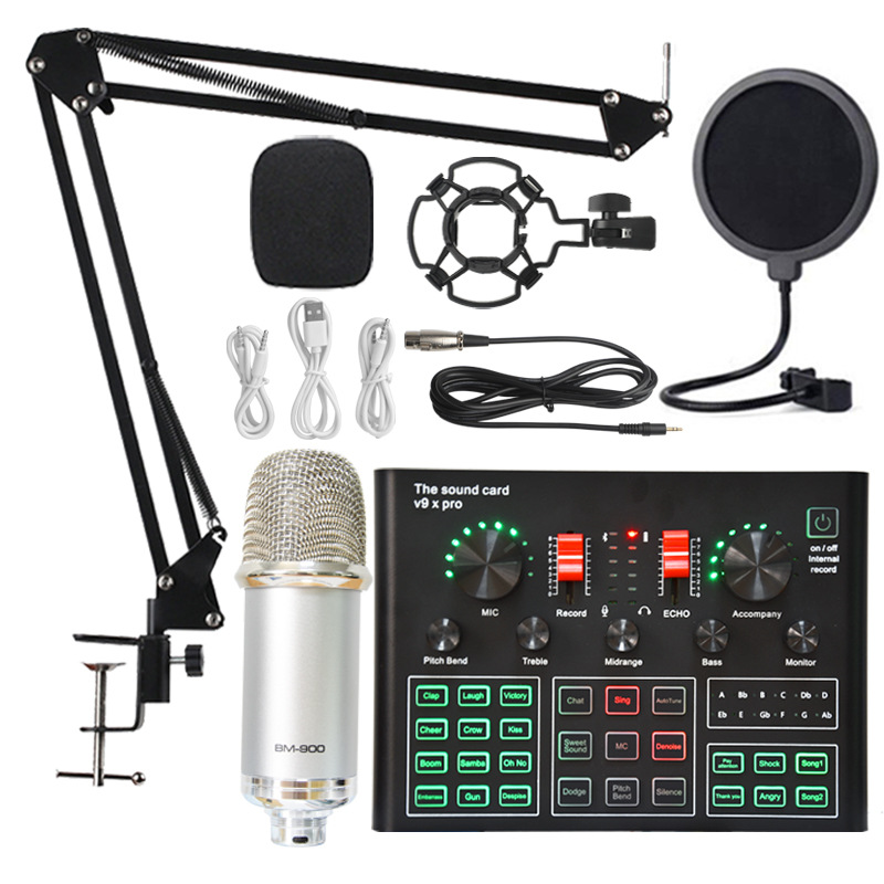 신형 V9 라이브 사운드 카드 세트 휴대폰 노래 녹음 라이브 사운드 카드 마이크 조명 라이브 장비
