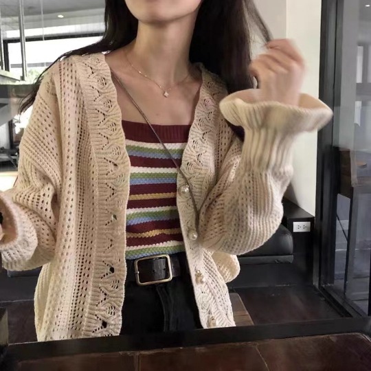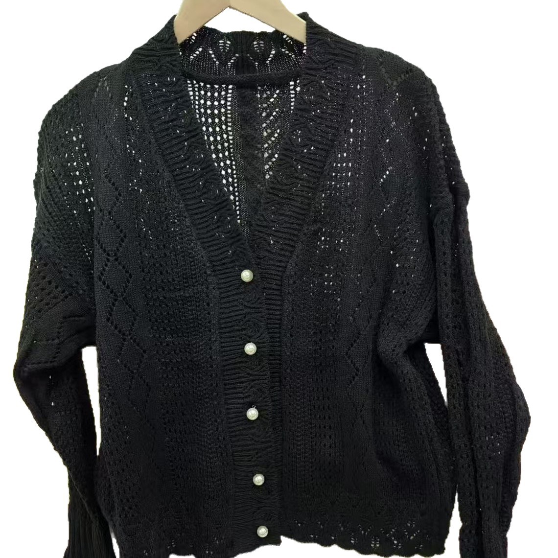 • 名称:女装镂空花边珍珠扣针织衫