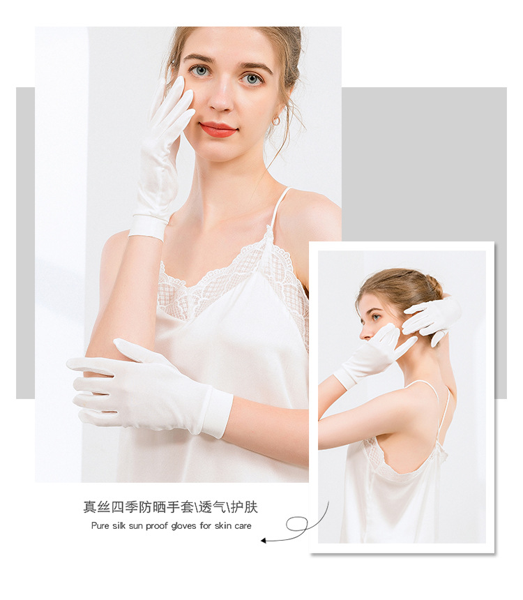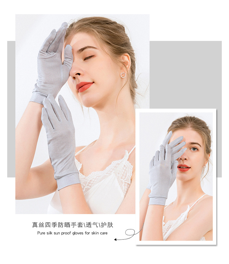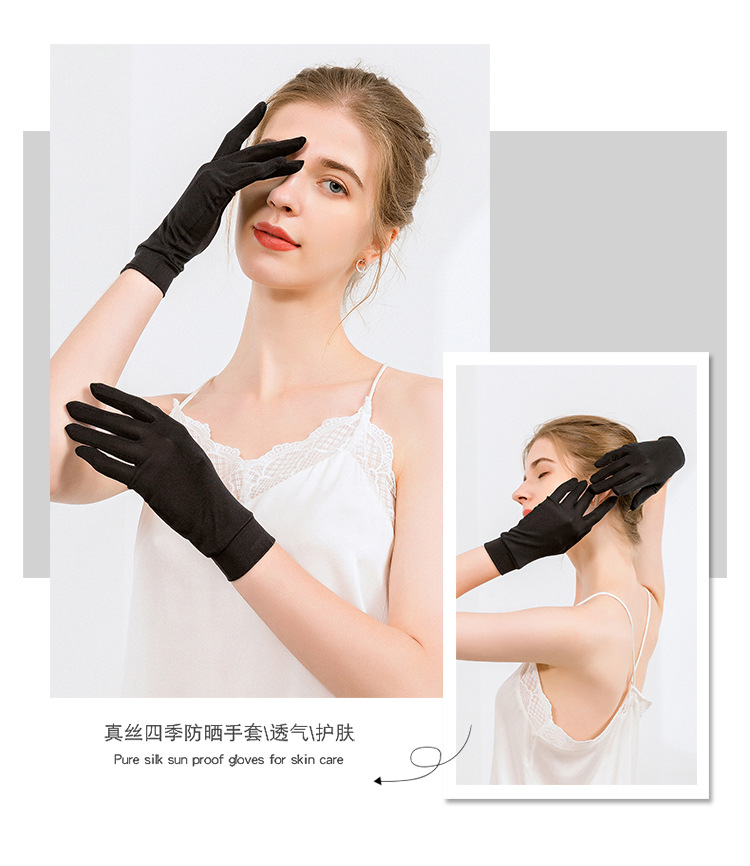 공장 아울렛 실크 장갑 여름 자외선 차단제 스킨 케어 100% 뽕나무 실크 니트 다섯 손가락 수면 보습 짧은 장갑