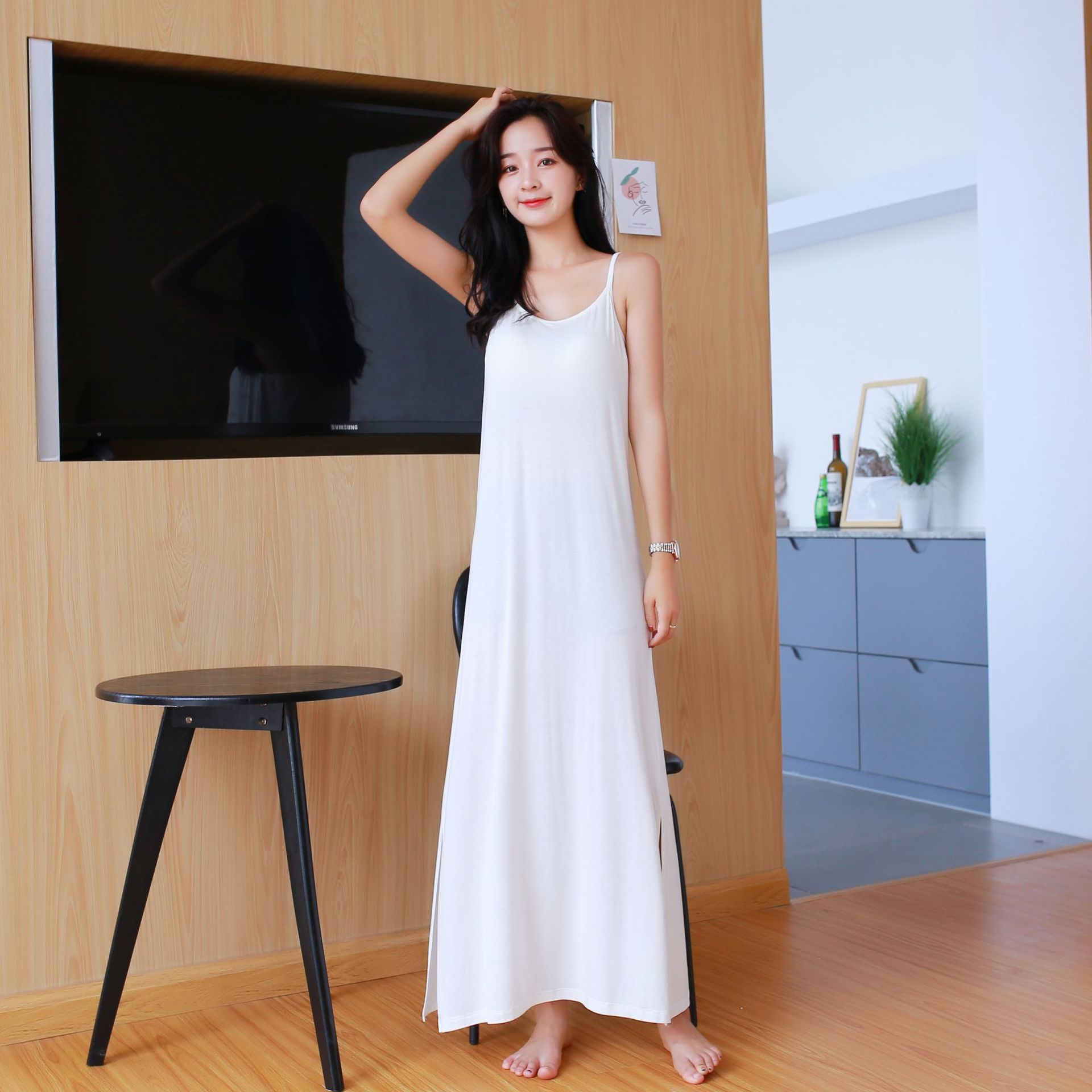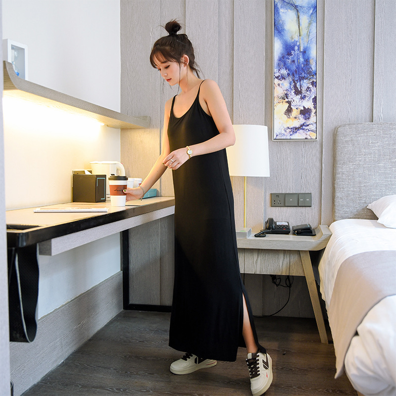 슬립 스커트, 브라가 내장된 드레스, 슬릿 스커트, 여성용, 외출복으로도 착용 가능, 모달 소재, 조절 가능, 롱 스커트, 엑스트라 롱스토어 가기
