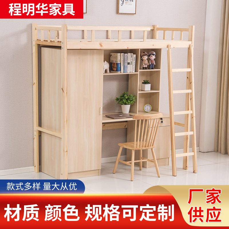 공장 공급 학교 기숙사 침대 하부 테이블 콤비네이션 결합 고저 원목 침대 상하 학생 공동 침대스토어 가기