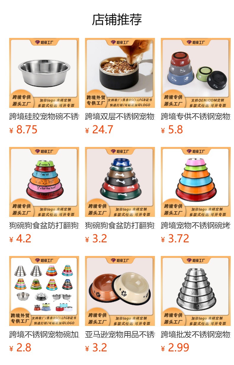 크로스 보더 스테인레스 스틸 애완 동물 사발 두꺼운 미끄럼 방지 애완 동물 사발 고양이 사발 개 사발 먹이 물 디스펜서 개 용품스토어 가기