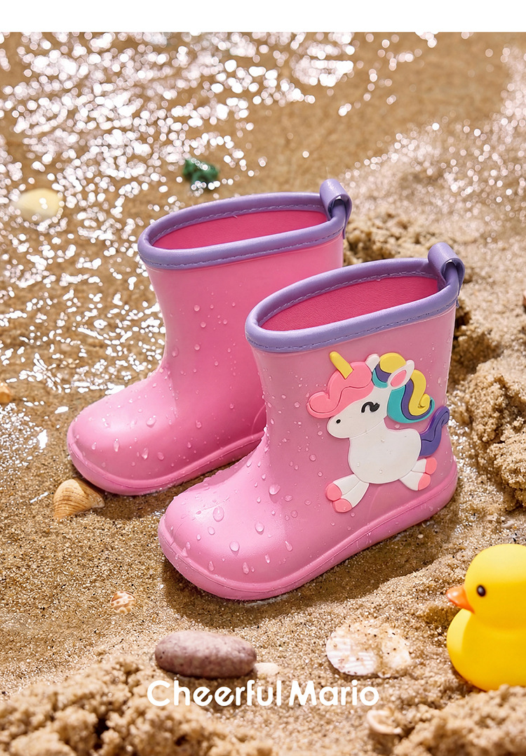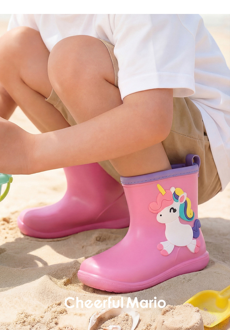 해피메리 어린이 레인부츠 만화 스타일 남아 여아 유아용 레인부츠 방수 EVA 워터슈즈 초등학생 고무부츠스토어 가기