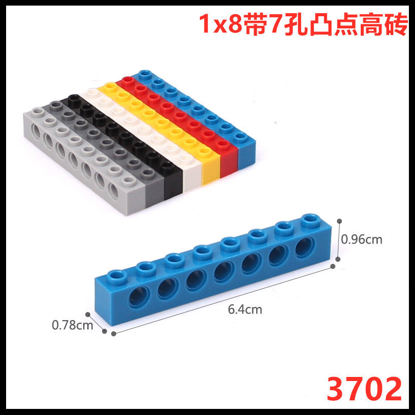 레고 3702 구멍 벽돌 국내 기술 기계 빌딩 블록 부품 7 구멍 범프 높은 벽돌 부품과 1x8 호환