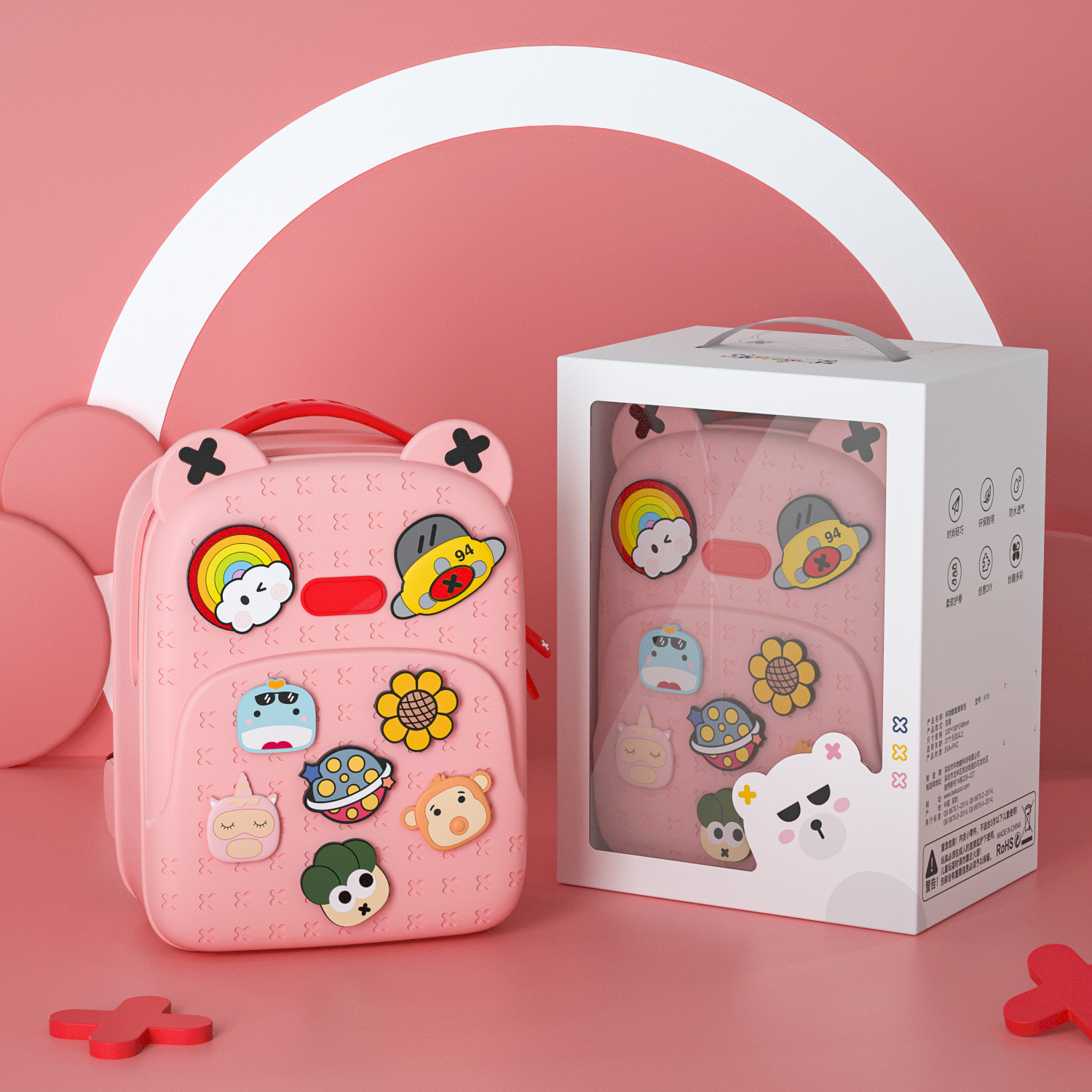 경량 트렌디 한 아기 배낭 어린이 DIY 패턴 크로스 바디 백 능선 보호 및 조명 유치원 학생 책가방 선물