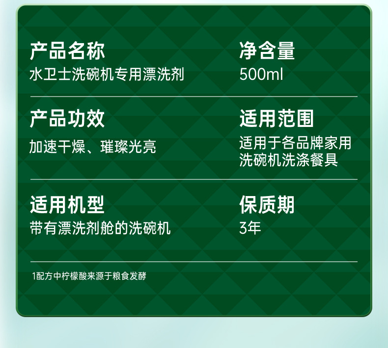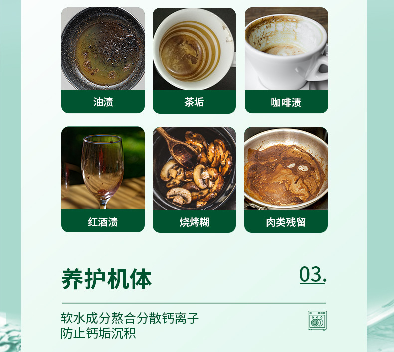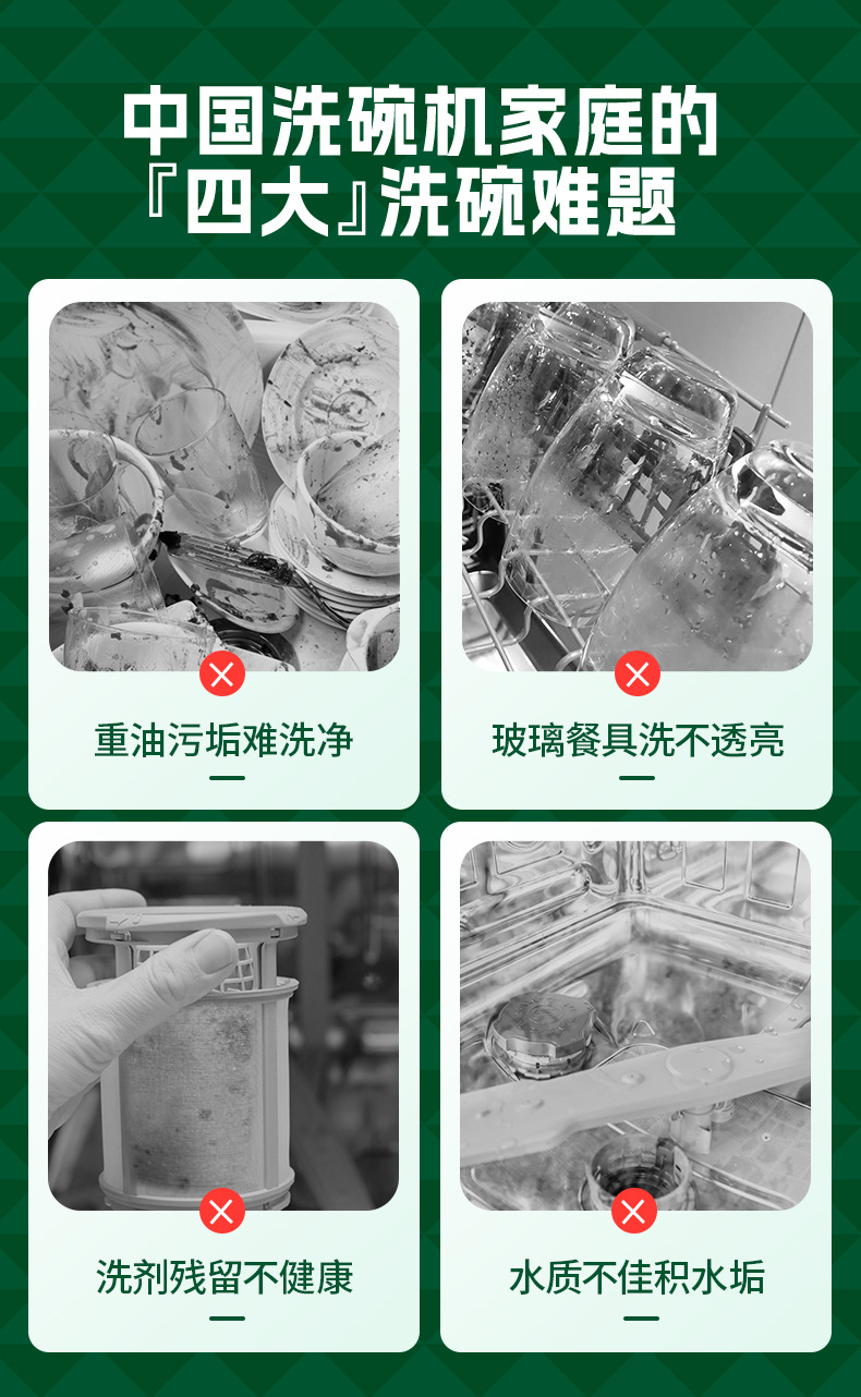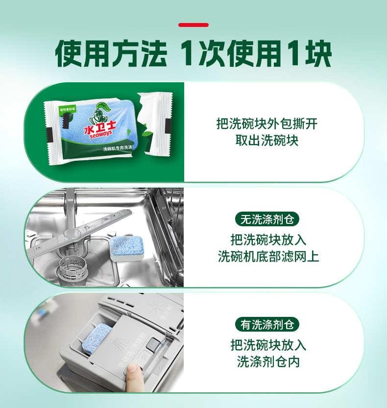 • 식기 세척제 3 병 + 헹굼 제 1 병 + 특수 소금 2 봉지 + 바디 세제 1 병