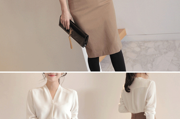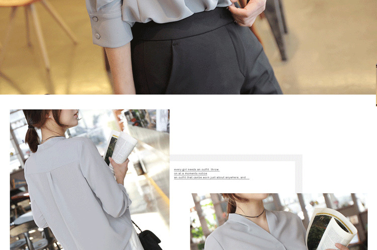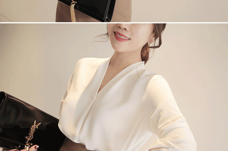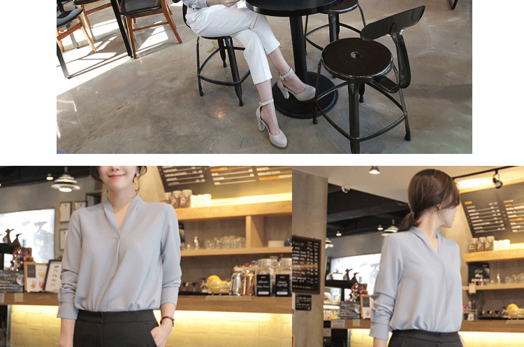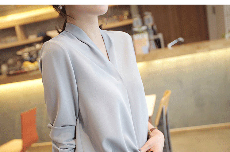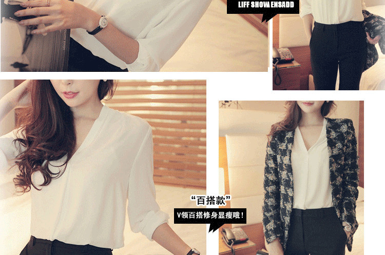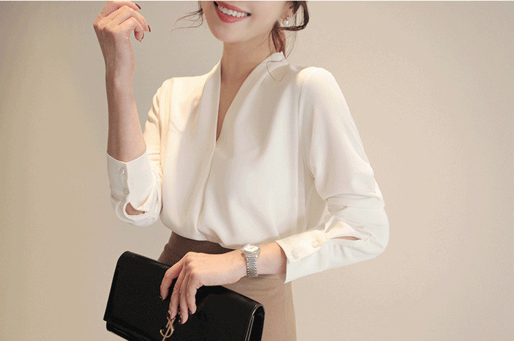 화이트 쉬폰 셔츠 여성용 2023 년 신작 화이트 셔츠 한국식 브이넥 OL 올매치 루즈한 프로페셔널 한국식 연예인스토어 가기