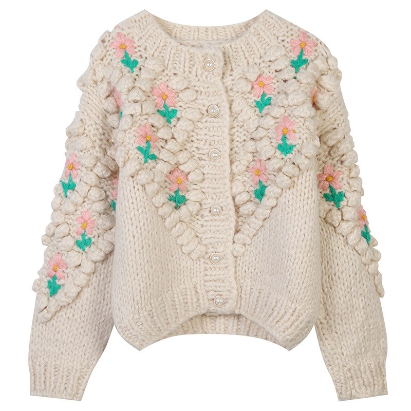 2023 가을과 겨울 새로운 여성 의류 꽃 달콤한 느슨한 게으른 스타일 니트 카디건 코트 스웨터 여성용 겉옷