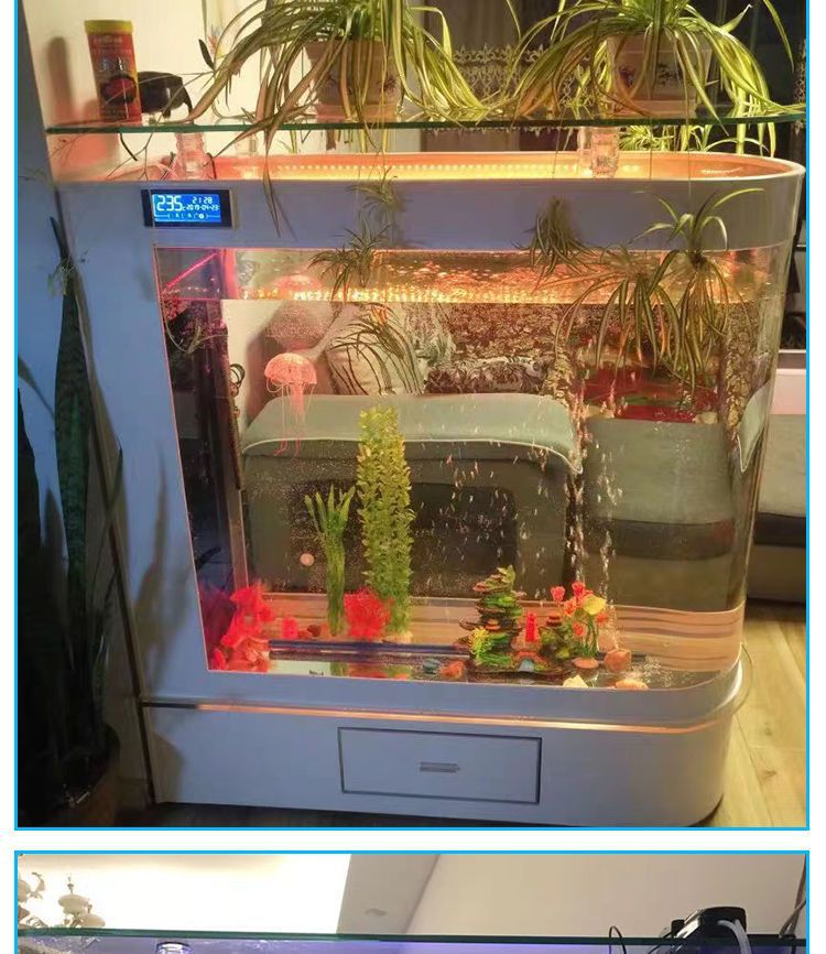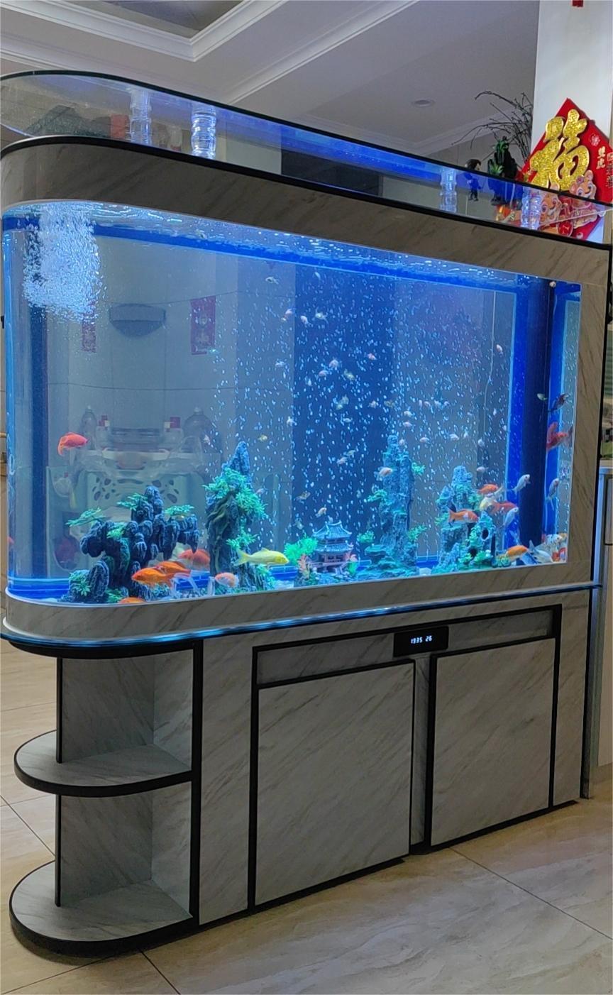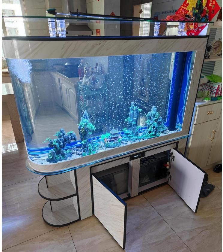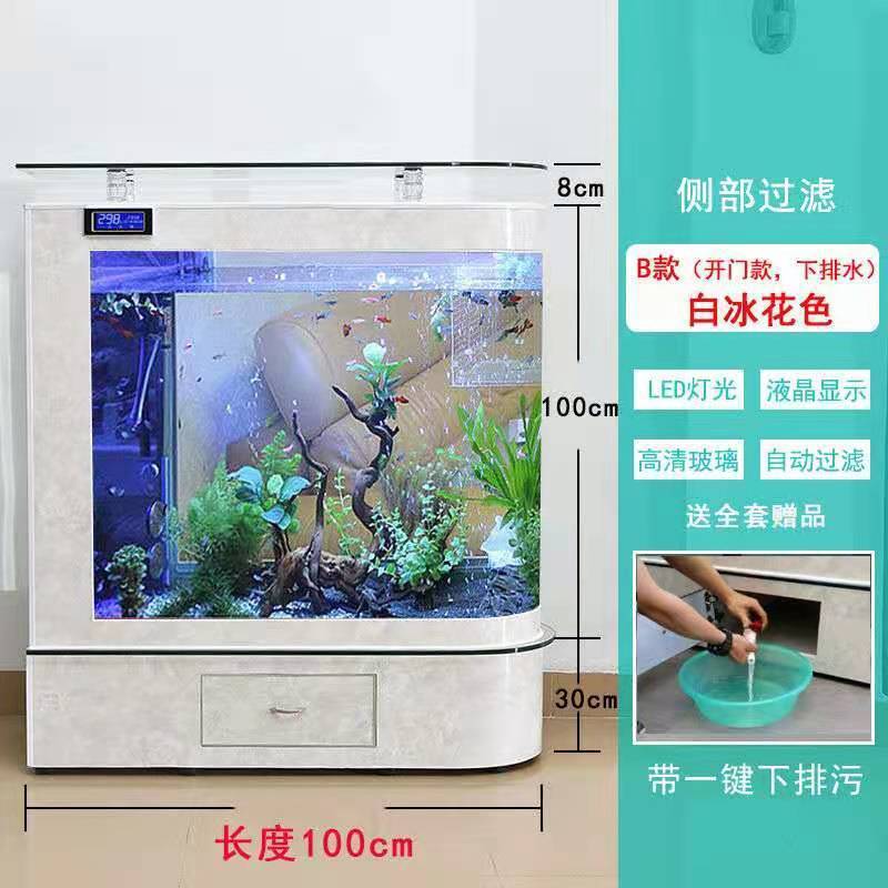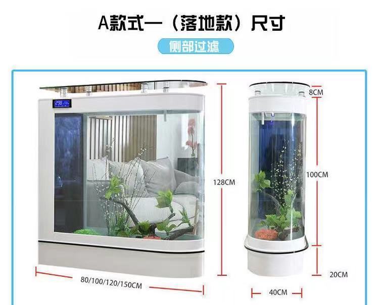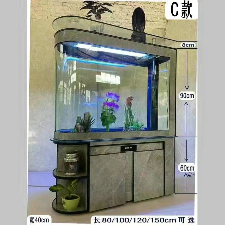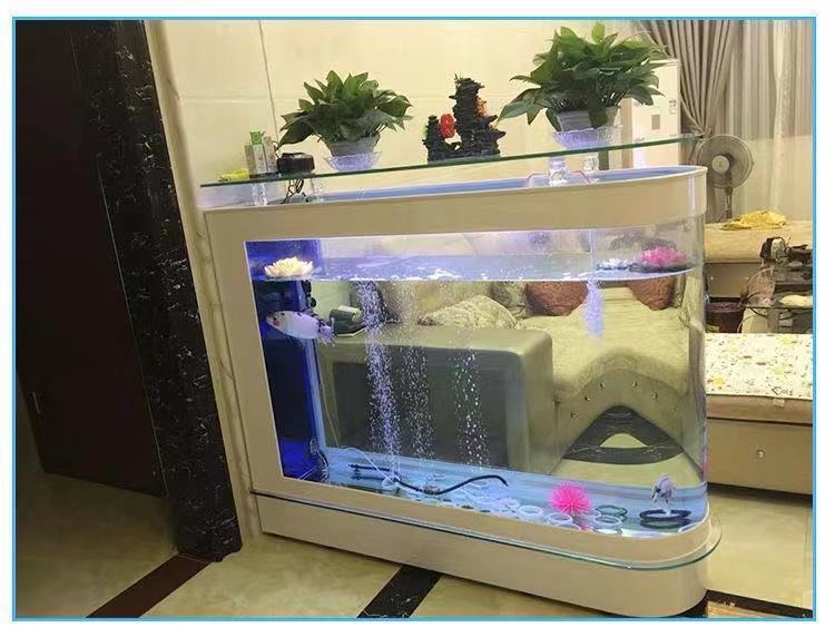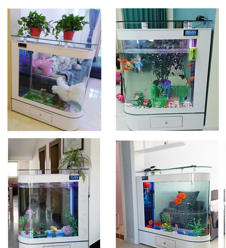총알 어항 가정용 거실 중소 어항 수족관 유리 바닥 스크린 파티션 생태 금붕어 탱크스토어 가기