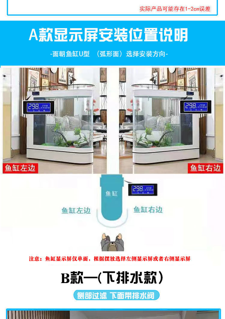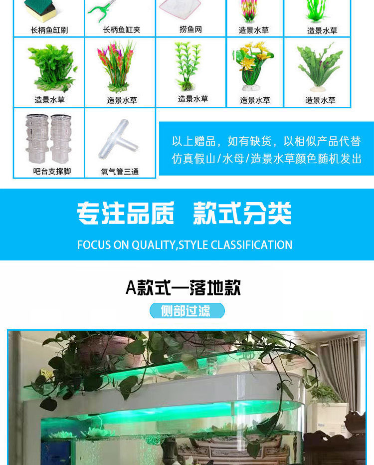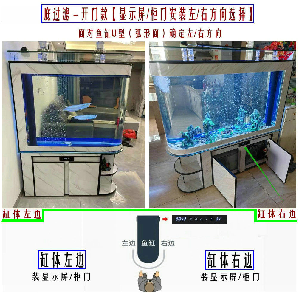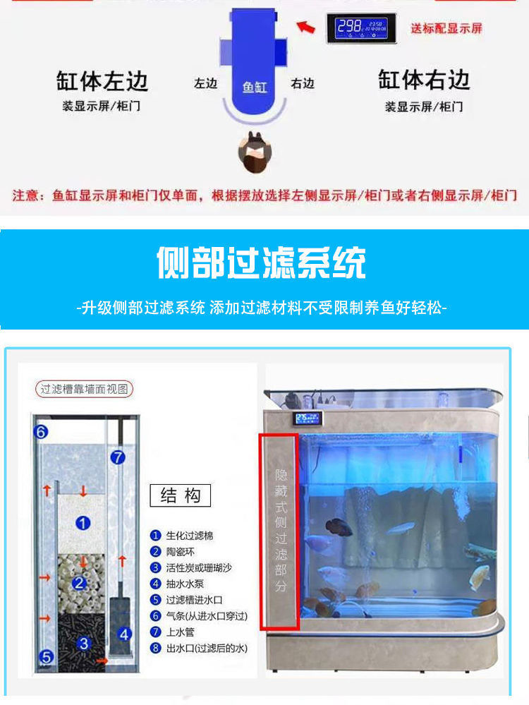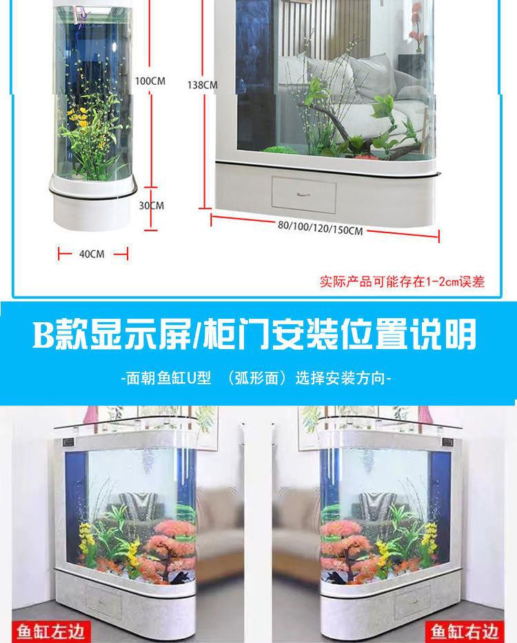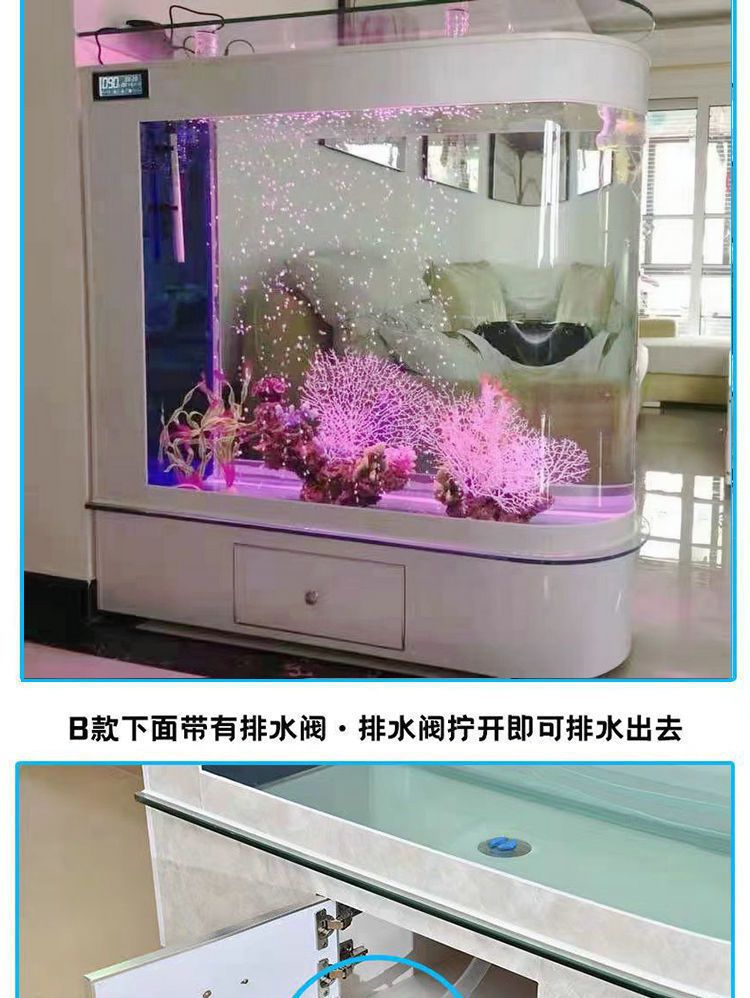 총알 어항 가정용 거실 중소 어항 수족관 유리 바닥 스크린 파티션 생태 금붕어 탱크스토어 가기