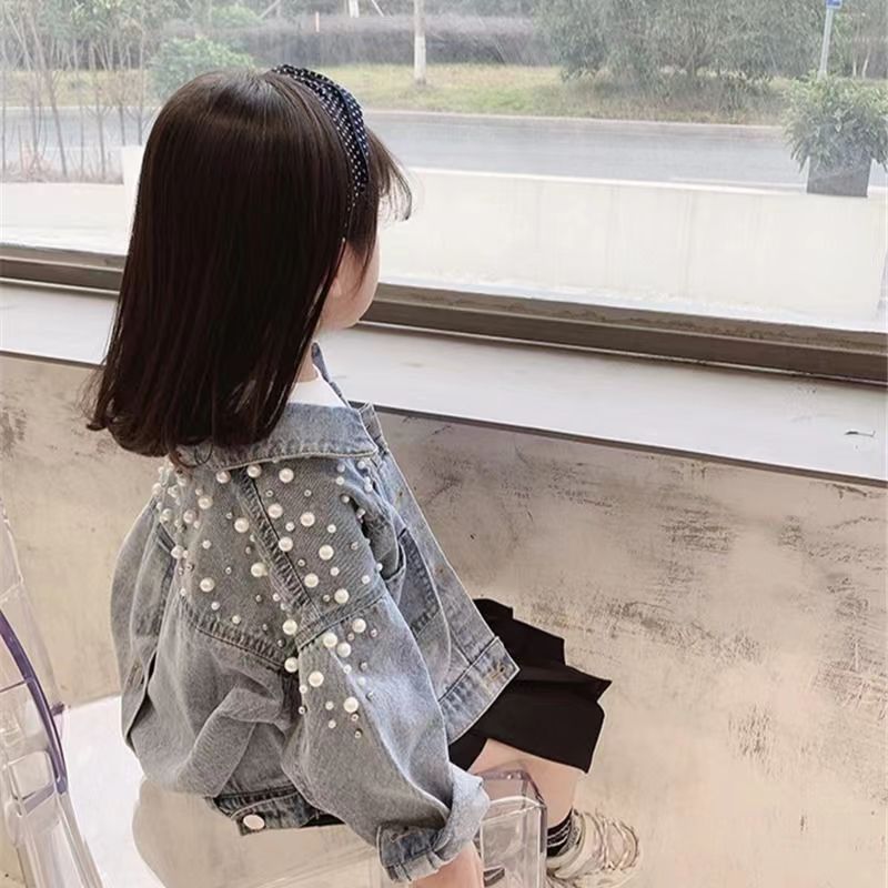 여자 봄, 가을 데님 재킷 2025 새로운 스타일 중소 어린이 유행 귀여운 부드러운 데님 스타일 캐주얼 재킷 가을 의류스토어 가기