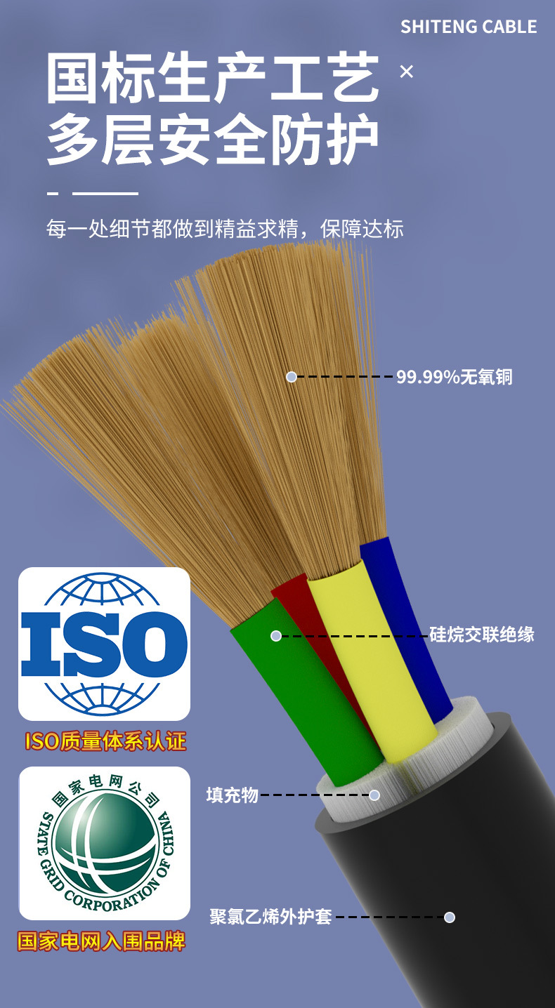 국가 표준 구리 코어 전원 피복 와이어 RVV2 3 4 5 코어 1 1.5 2.5 4 6 10 사각 케이블스토어 가기