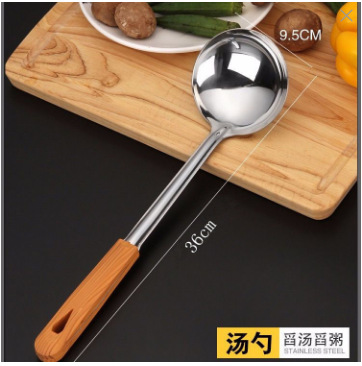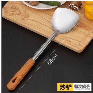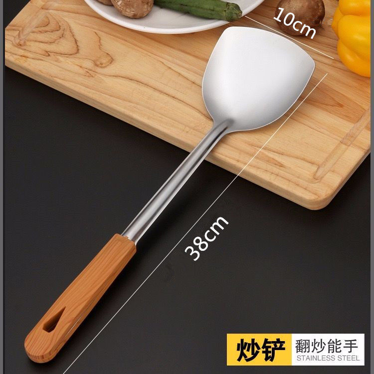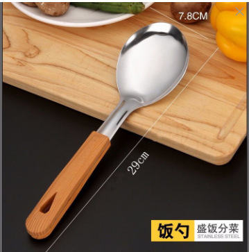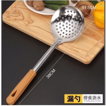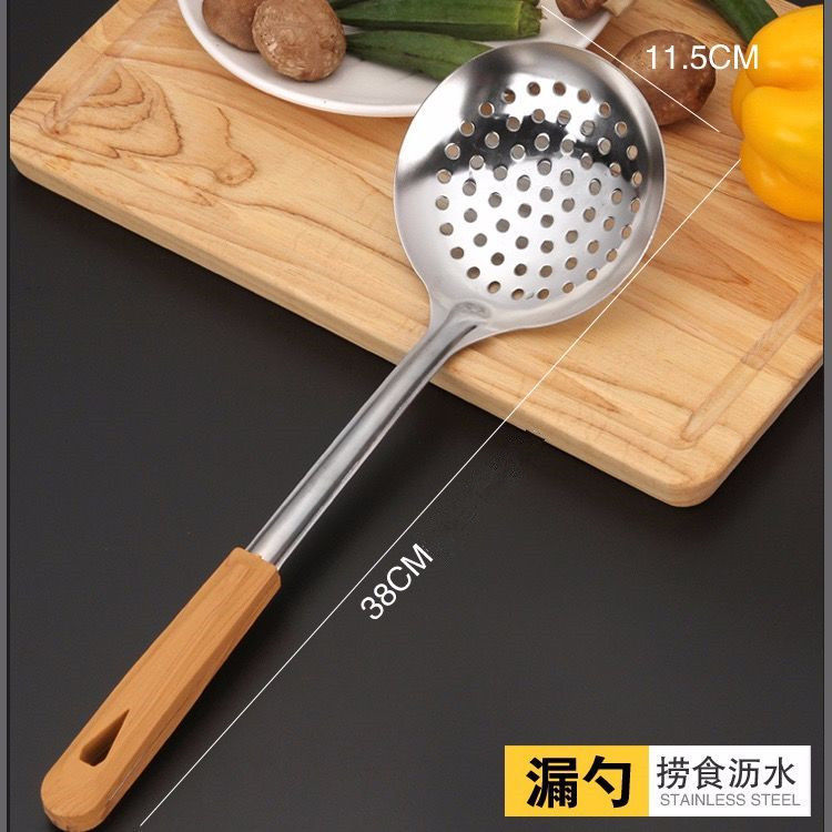 주방 볶음 나무 손잡이 수프 스푼 볶음 삽 요리 주방 용품 스테인레스 스틸 볶음 스푼 소쿠리 세트스토어 가기