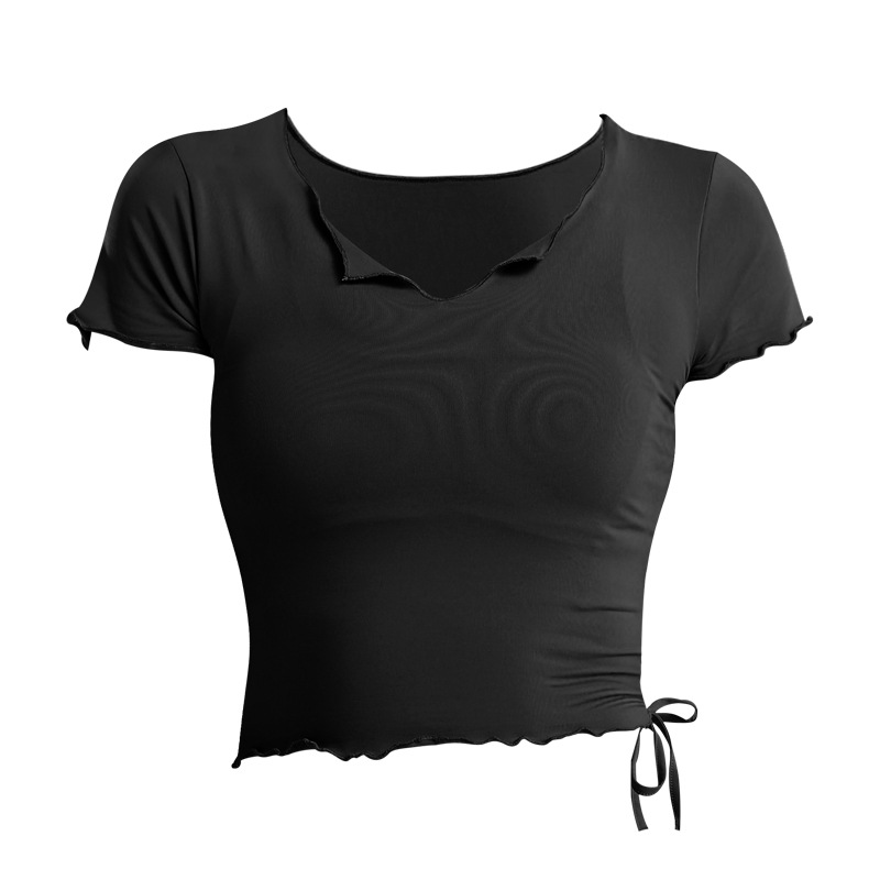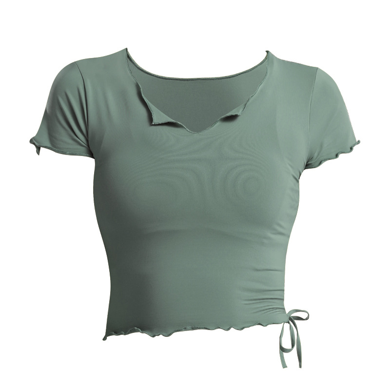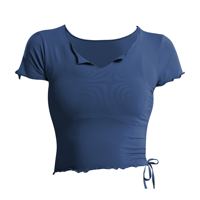 졸라매는 끈 V-넥 배꼽 짧은 탑 속건 옷 꽉 실행 요가 반팔 티셔츠 여성 여름 패션 2020 New