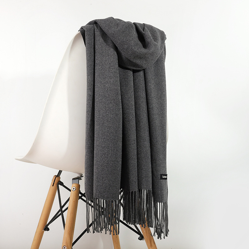 캐시미어 스카프 여성용 겨울 단색 술 에어컨 타월 모조 캐시미어 숄 따뜻한 회색 가을과 겨울 남성 스카프