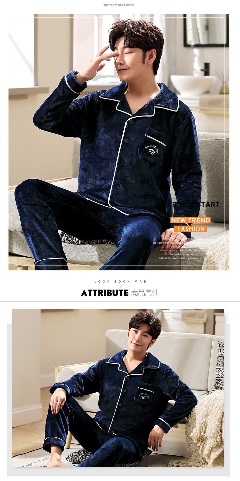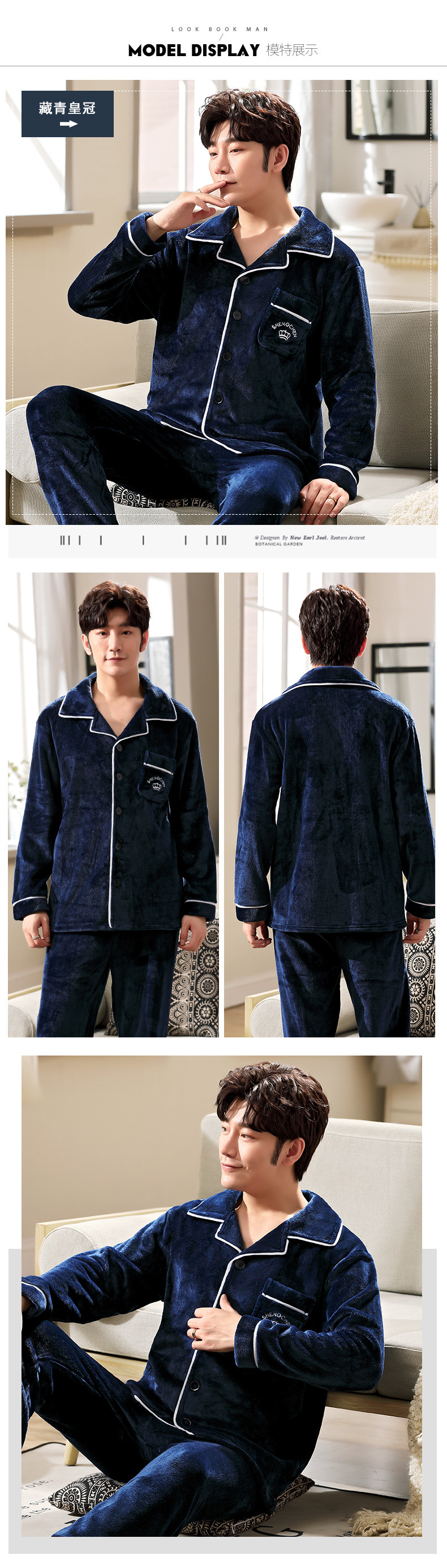 잠옷 남자의 긴 소매 산호 양털 가을과 겨울 새로운 기모 두꺼운 가정 옷 세트 소스 공장 용품 큰 콩스토어 가기