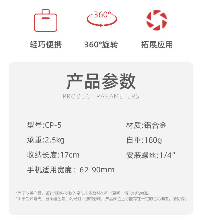 Huxi CP-5 회전 모든 금속 휴대 전화 클립 수평 및 수직 촬영 라이브 삼각대 고정 클립 비디오 사진 브래킷