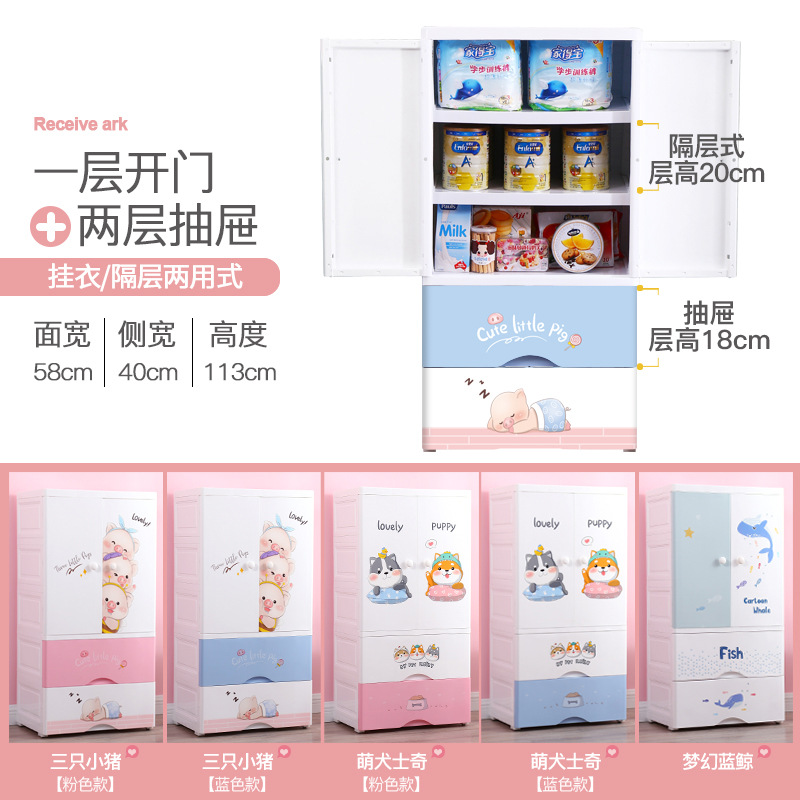 옷 마감 캐비닛 이중 도어 옷장 보관 가슴 플라스틱 두꺼운 서랍 유형 어린이 보관 캐비닛 제조 업체스토어 가기