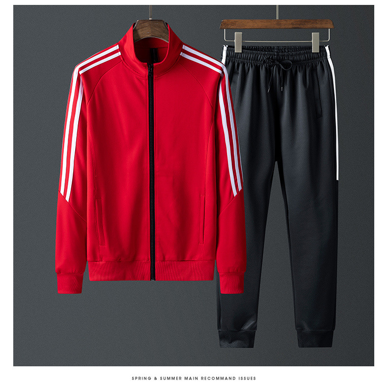 스포츠 정장 남성 트렌디 캐주얼 운동복 남성과 여성 봄, 가을 스탠드 칼라 카디건 스웨트 대외 무역 투피스 세트 인쇄 가능