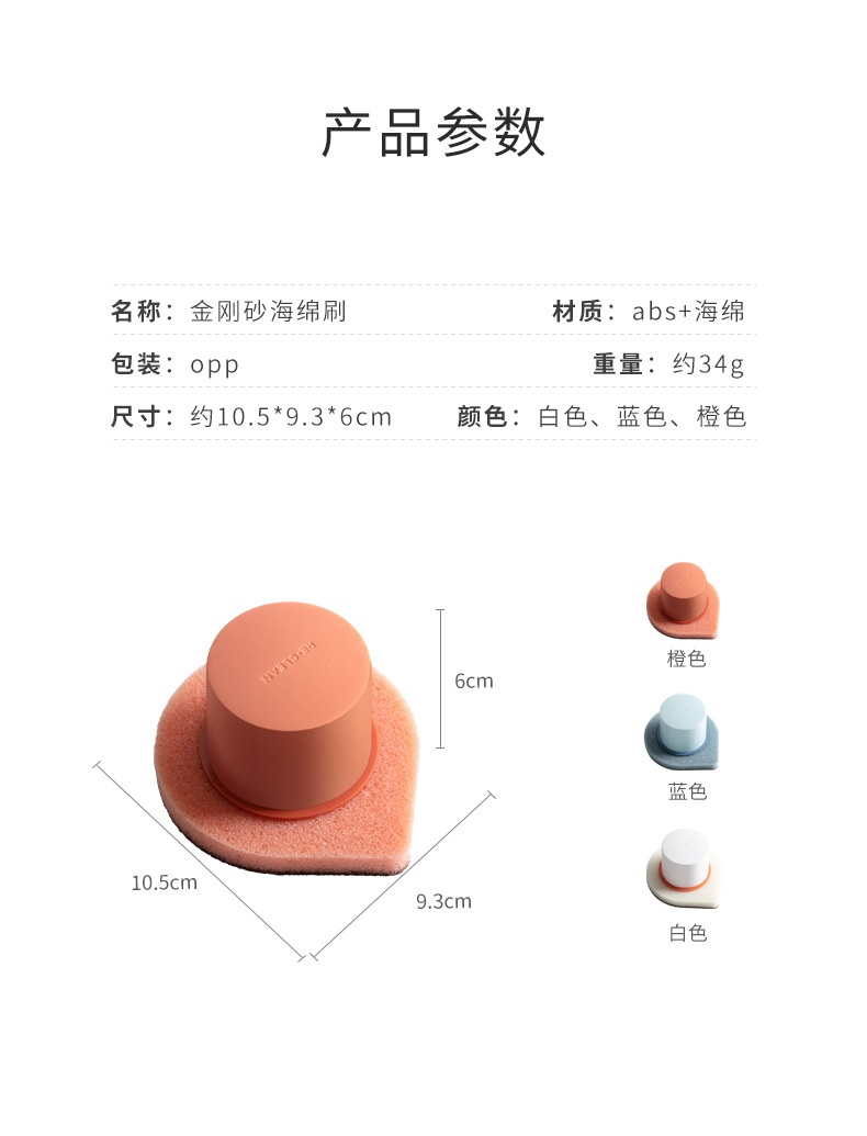 产品材质:ABS+海绵+金刚砂(上层金刚砂层,下层海绵层)