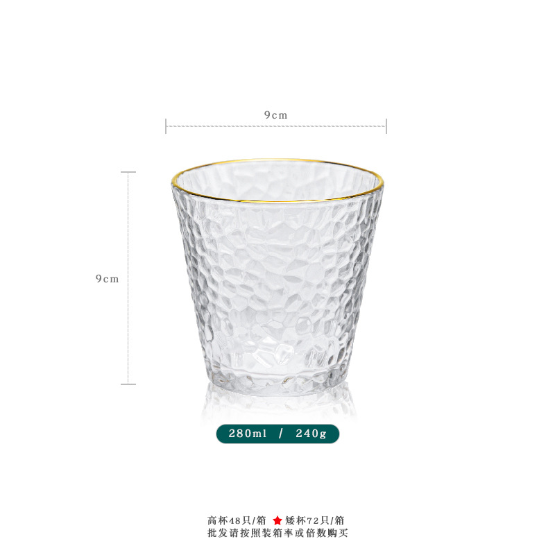 일본 망치 유리 인터넷 연예인 투명 금 컵 가정용 우유 아침 식사 금테 주스 컵 도매스토어 가기