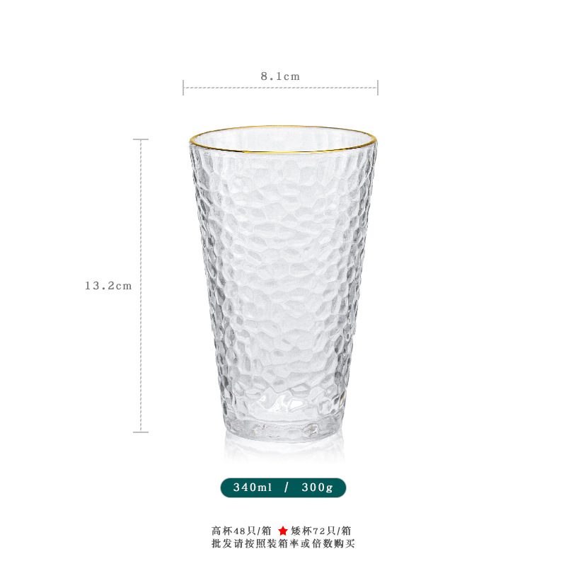 일본 망치 유리 인터넷 연예인 투명 금 컵 가정용 우유 아침 식사 금테 주스 컵 도매