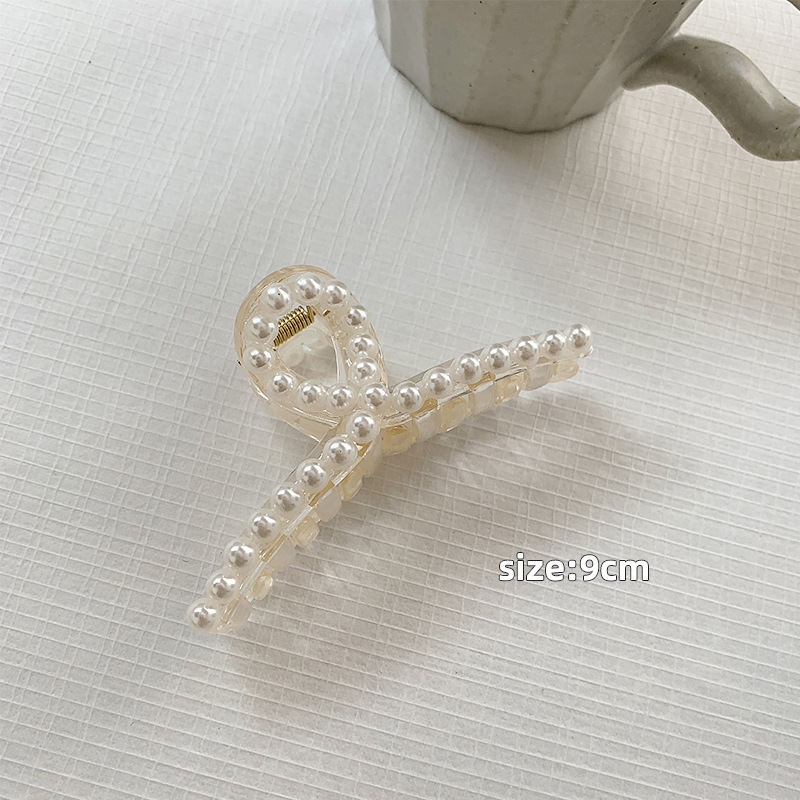 진주 머리핀 뒤 머리 샤워 그랩 클립 큰 한국 우아한 상어 클립 머리 그랩 머리핀 클립 모자