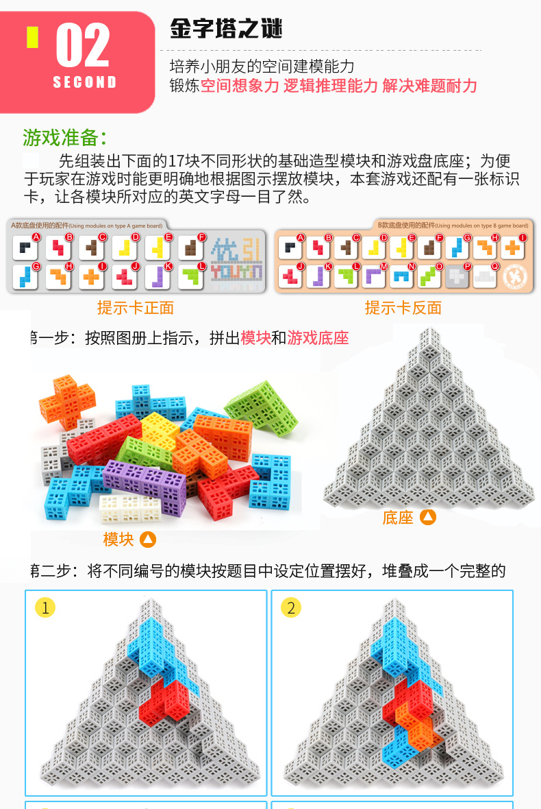 육면체 블록 집중력 사고력 훈련 피라미드 조립 과학 교육 정사각형 블록 장난감
