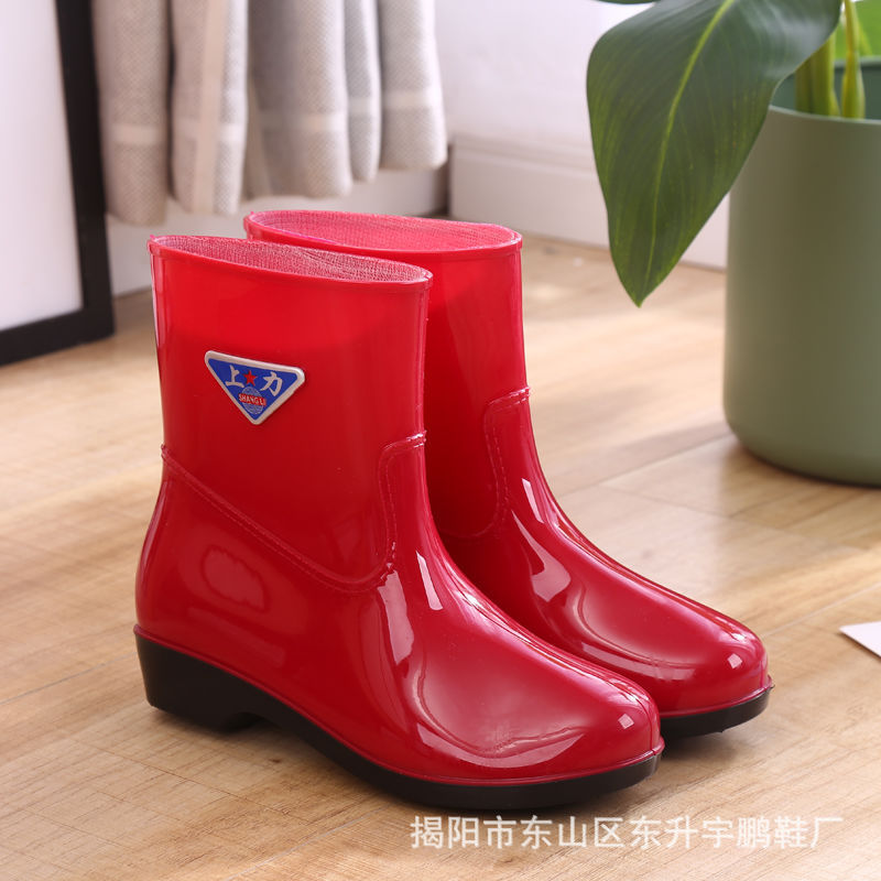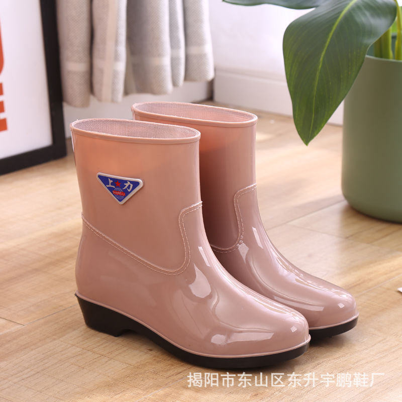 무료 배송 미드 튜브 패션 숙녀 레인 슈즈 하이 20cm 미끄럼 방지 내마모성 워터 슈즈 사이트 주방 세차 작업 신발 방수