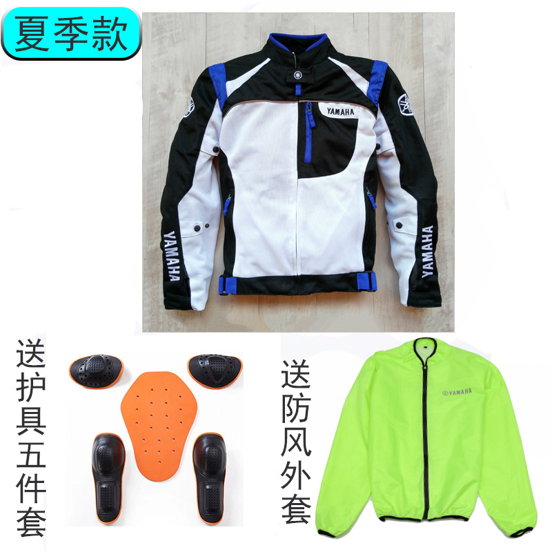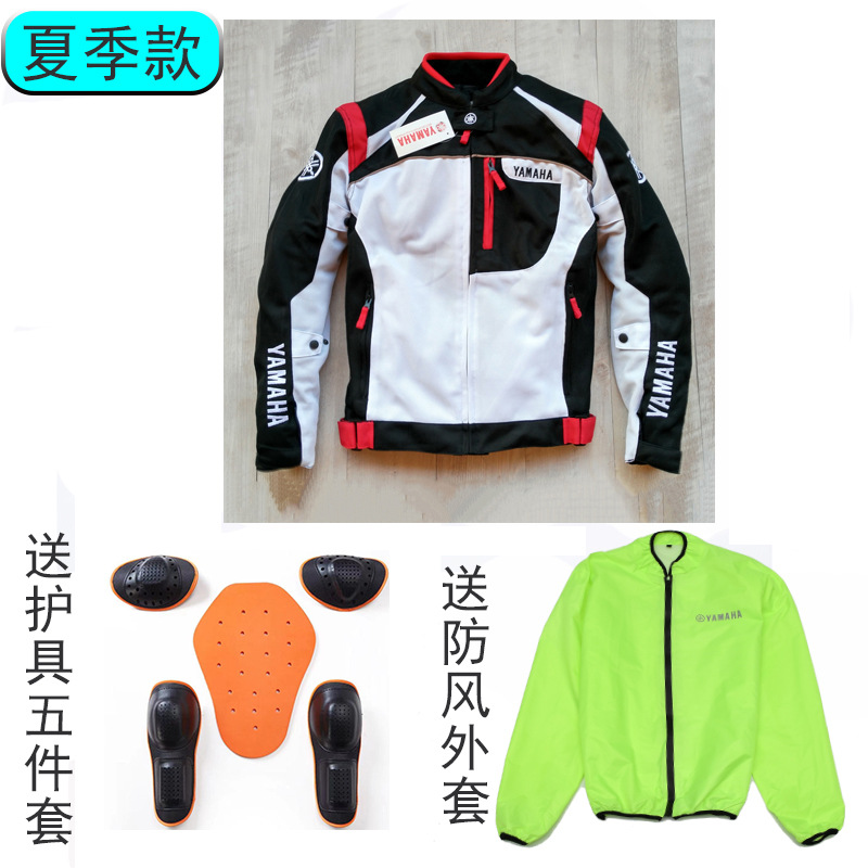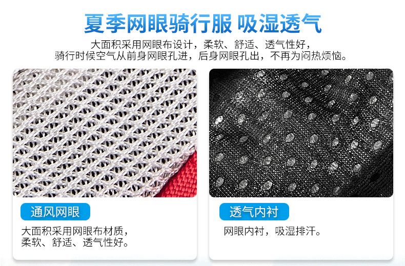 【夏季款骑行服:夏季专用】涤沦网眼面料,内有五件护具,都可拆卸。赠送防风防水外套,大面积的网眼,风直接吹在皮肤上,非常透气凉爽。夏季款不防水的哦。赠送防风防水外套