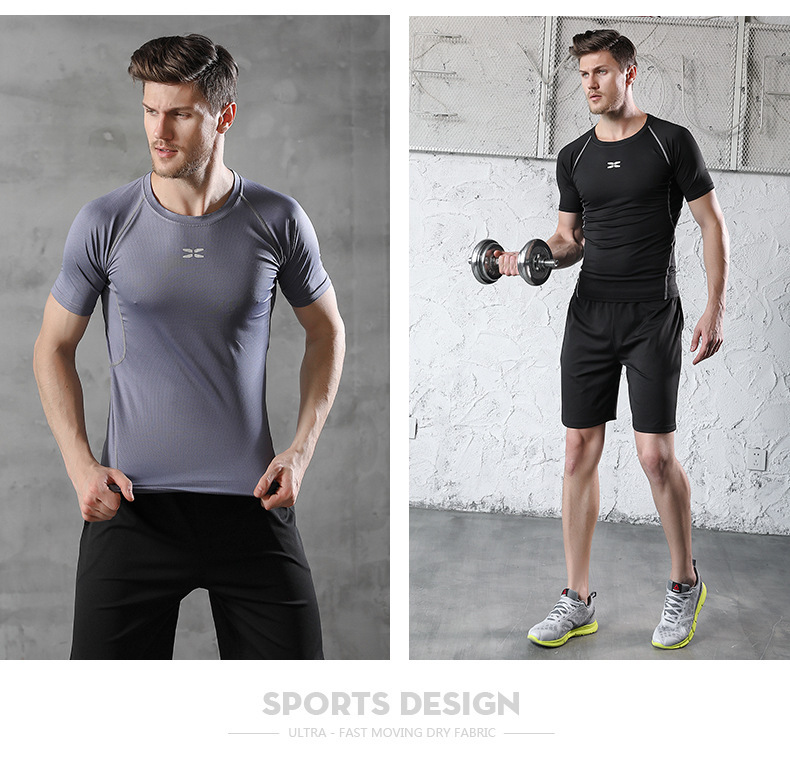 Juyitang 의류 남성용 반팔 느슨한 타이트 피트니스 티셔츠 러닝 의류 반팔 티셔츠 여름 스포츠 티셔츠