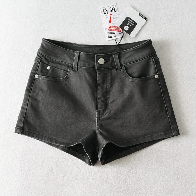연기가 자욱한 회색 하이 허리 데님 반바지 여성용 타이트한 칼집 섹시한 스트레이트 슬리밍 스트레치 핫 팬츠