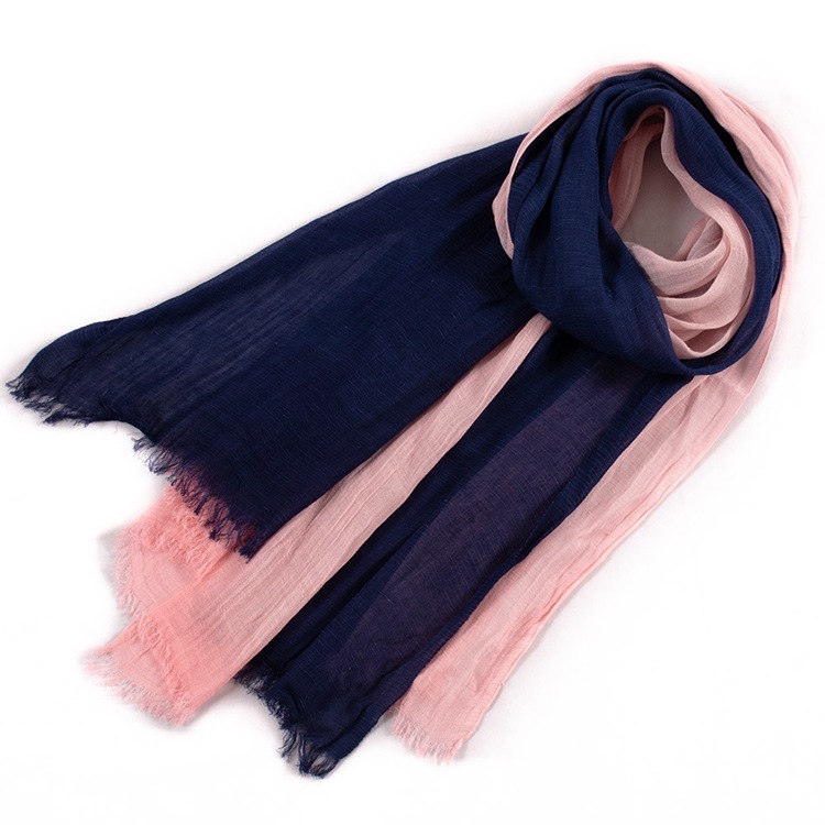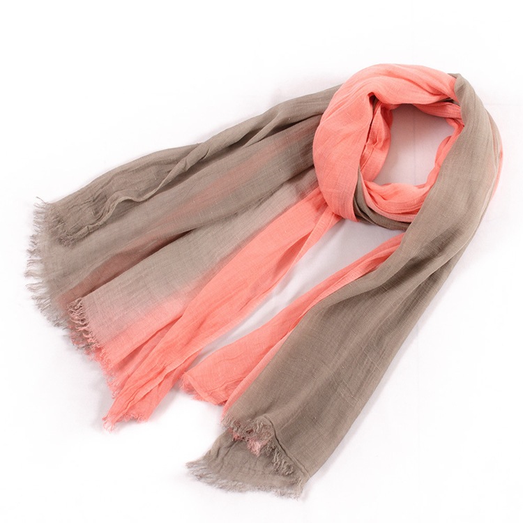 2 색 스티칭 교수형 염색 코튼 린넨 스카프 그라데이션 얇은 스카프 여성 가을과 겨울 유럽 역 일본-한국 스타일 레이디스토어 가기