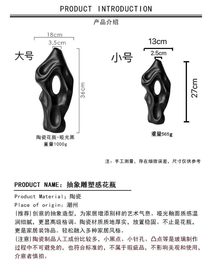 公司介绍:潮州烨东陶瓷工厂创立于1995年,原厂多年加工批发陶瓷花瓶,积 累丰富的制作工艺,并在2003年广州交易会与德国、美国、西班牙等客户签订合同,定期供应陶瓷花瓶,工厂单子多为线下外贸,品质可以保证。长期订单合作请本公司也有承接定制服务,客户定制需要自备产品图与客服进行协商交流,欢迎您来定制批发。