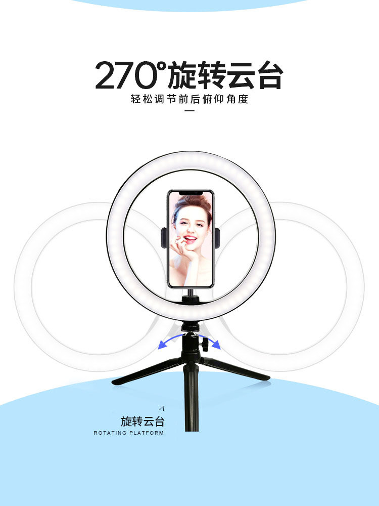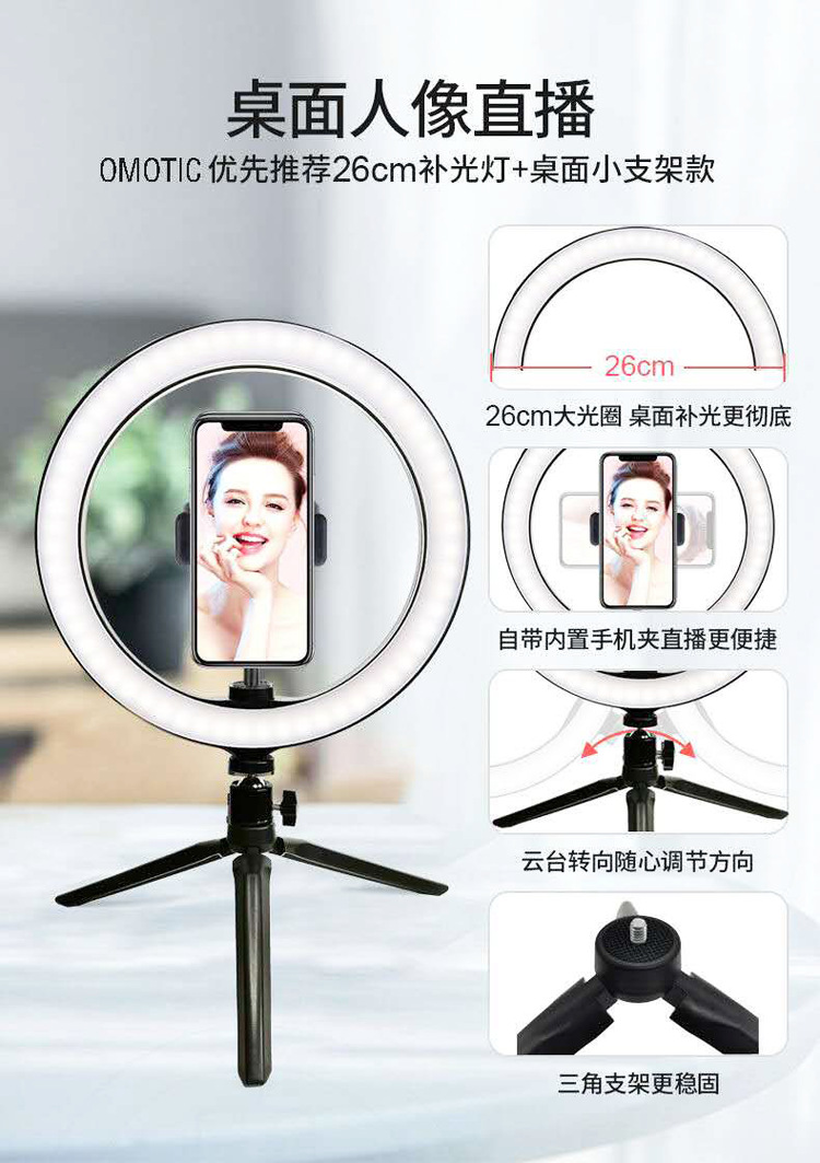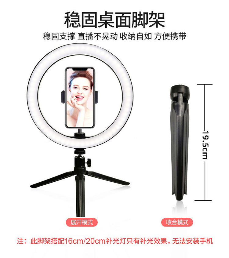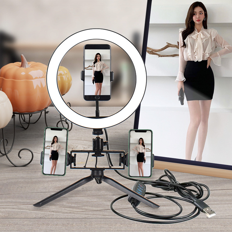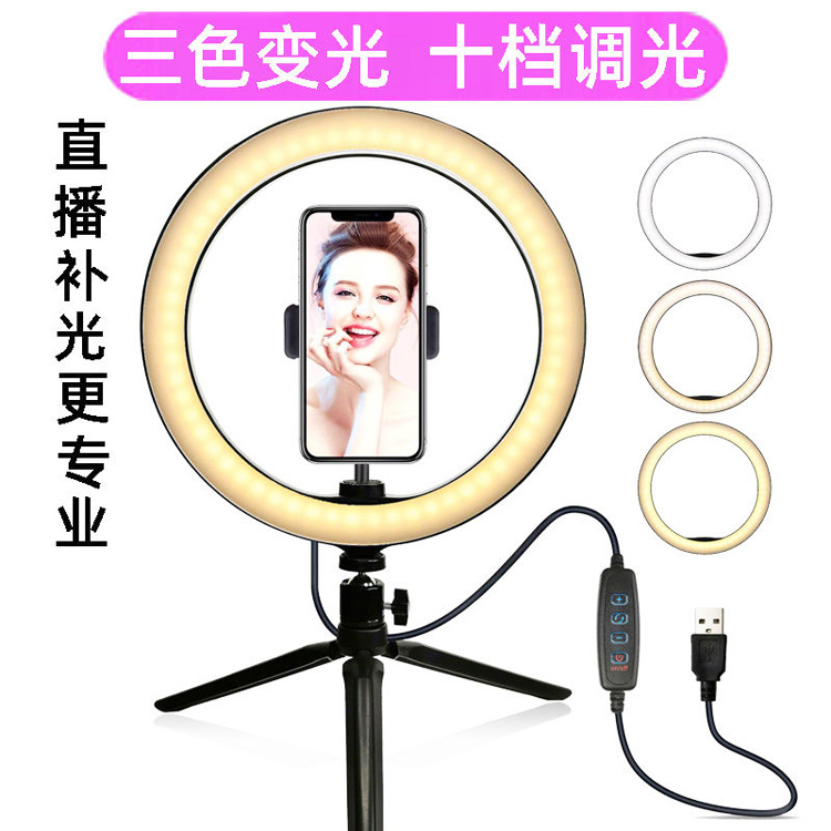 10 인치 휴대 전화 라이브 필 라이트 삼각대 led 링 라이트 데스크탑 셀카 앵커 아름다움 사진 조명